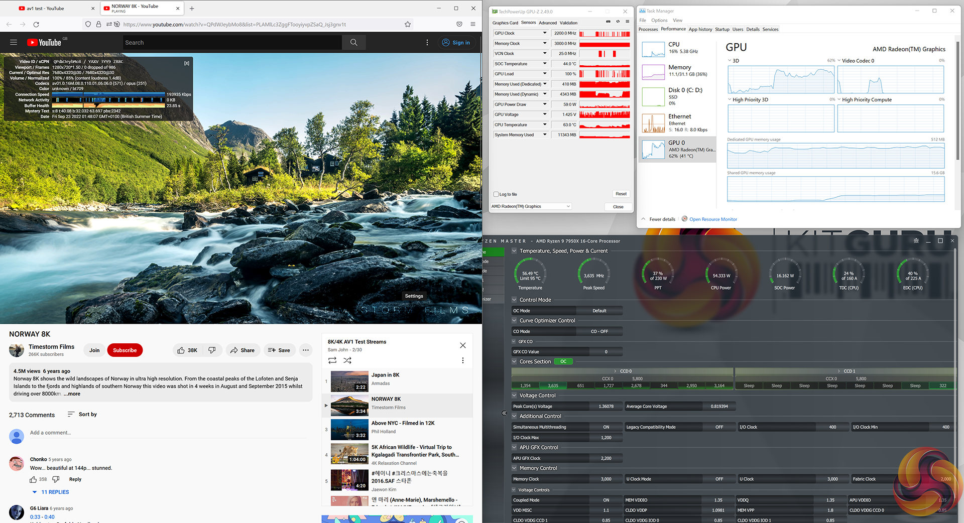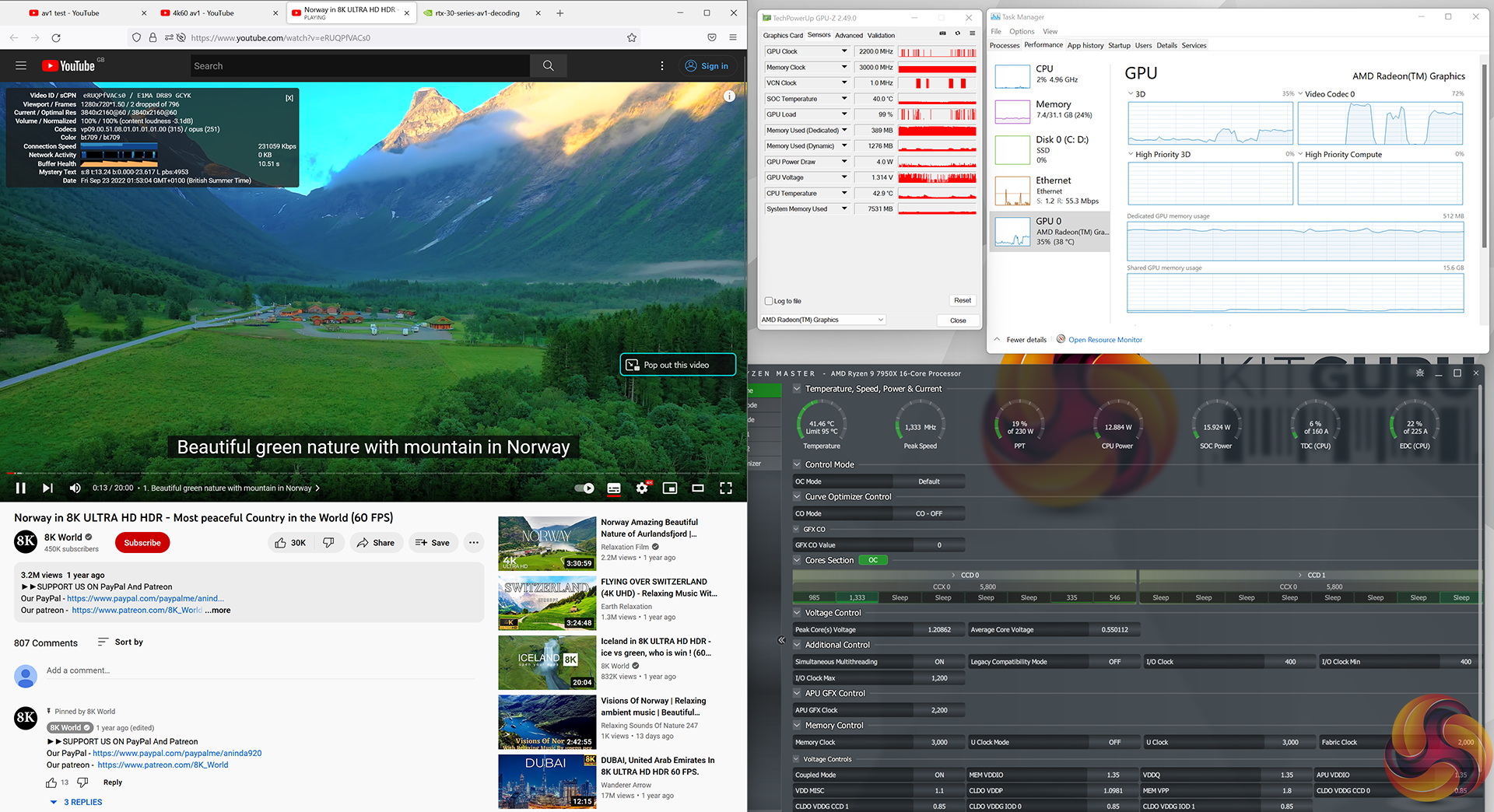 AV1 decode is supported, as we tested successfully with 4K60 YouTube through Edge. 8K30 AV1 actually worked too, but this was running through the GPU rendering hardware rather than the efficient media decoder.