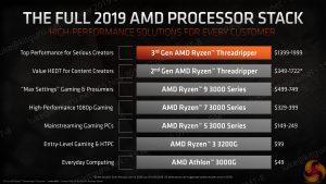 Clearly, both in terms of price and core counts, Threadripper 3000 doesn’t have a logical desktop (not Xeon) competitor from Intel given the new Cascade Lake-X HEDT pricing. Intel’s LGA 2066-based HEDT parts are competitors through way of being HEDT platforms, supporting quad-channel memory, and featuring a large number of on-chip PCIe lanes.