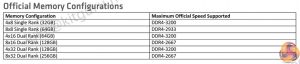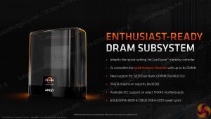 For 4-DIMM configurations, whether they’re single rank or dual rank, you get official support for 3200MHz. So, 4x8GB, 4x16GB, and 4x32GB will run at 3200MHz. 8x8GB is officially supported at 2933MHz, 8x16GB at 2667MHz, and 8x32GB at 2667MHz. With that said, motherboard support for speeds of DDR4-3600MHz and above will be widespread, as we have seen with Ryzen 3000.