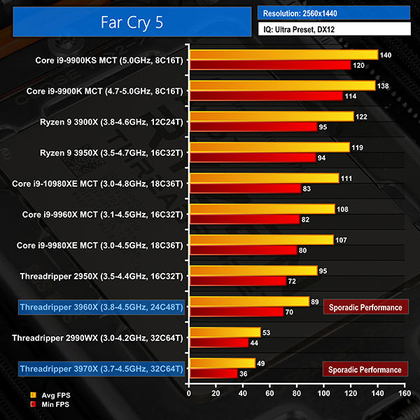 1440P performance shows much of the same trend, with AMD's Game Mode in Ryzen Master being equally capable of boosting Far Cry 5 performance to 110 FPS average.