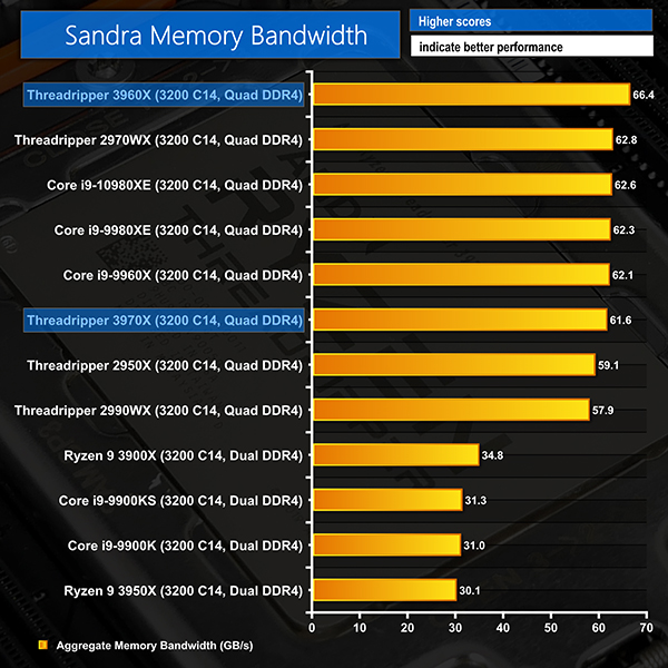 Either way, you get a healthy serving of memory bandwidth from Threadripper 3000 without any clear headaches caused by the centralised IO die and Infinity Fabric interconnects.