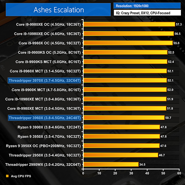It is clear to see that the Ryzen Threadripper 3960X and 3970X are both perfectly competent gaming processors. That comes as no real surprise given that the central IO die avoids memory and PCIe accessibility headaches that plagues Threadripper 2970WX and 2990WX gaming numbers.
