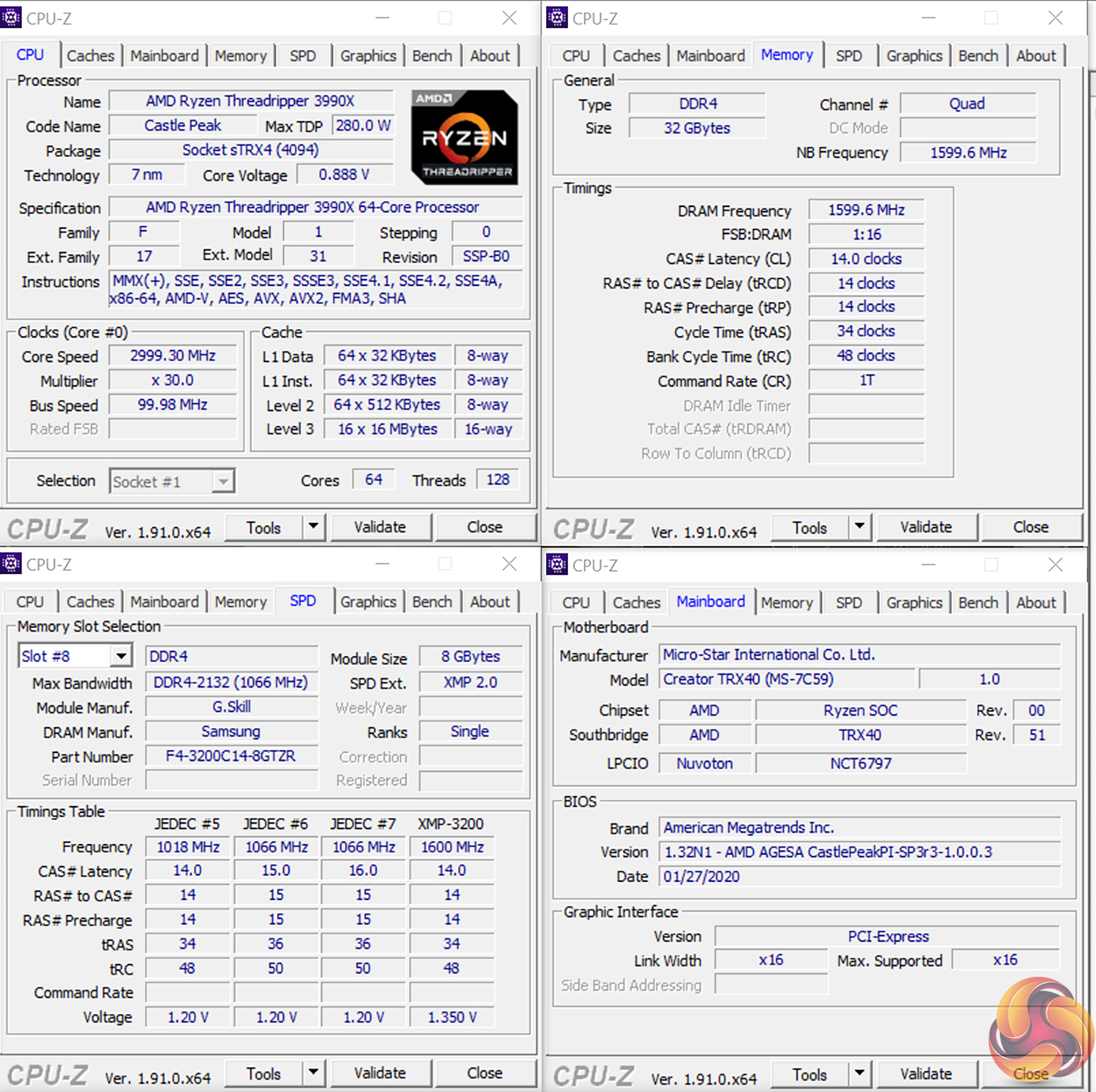 The partnering hardware of choice is the MSI TRX40 Creator motherboard, 32GB of 3200MHz CL14 DDR4, and a Seasonic Prime TX-1000 1kW Titanium PSU.