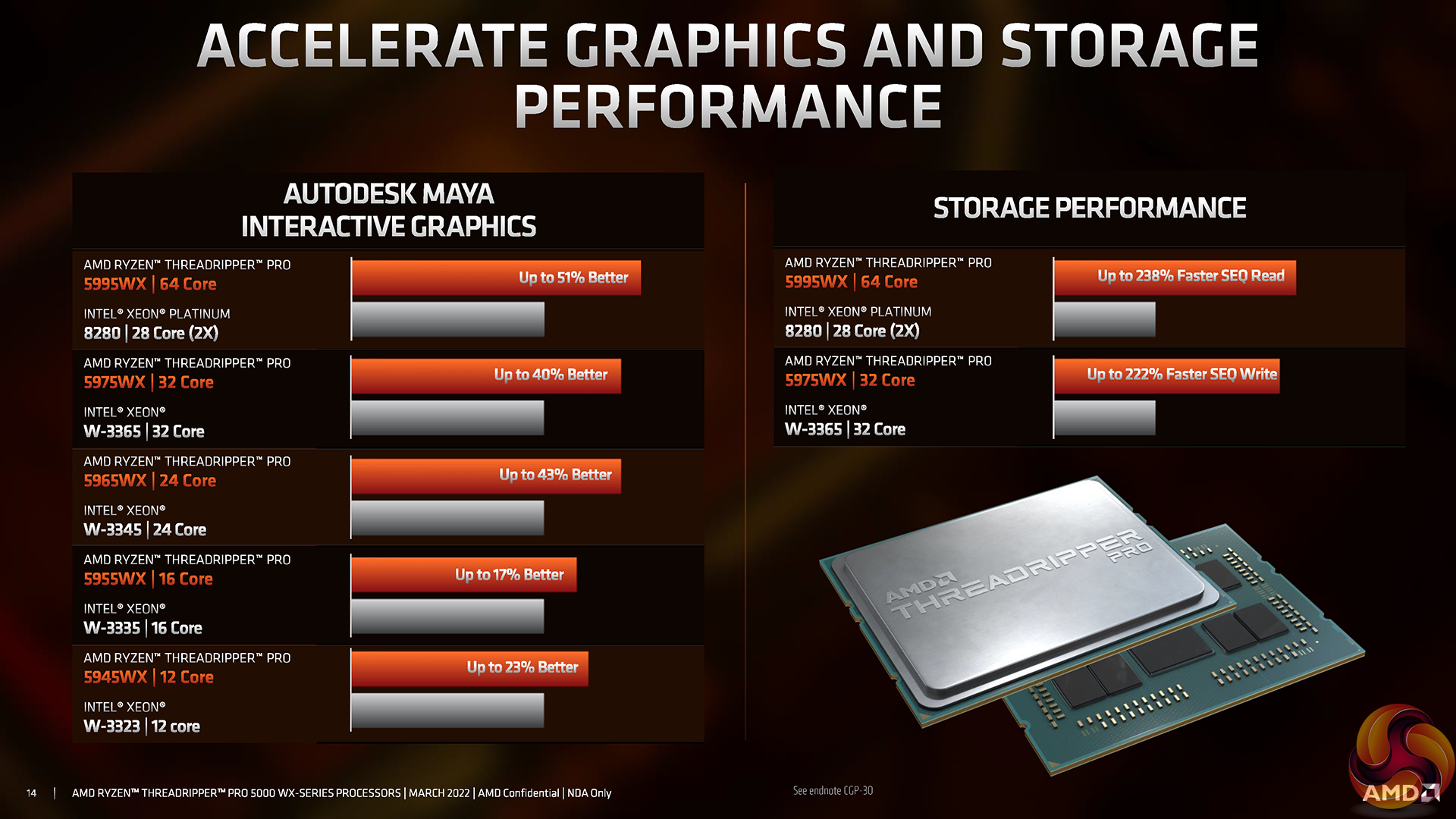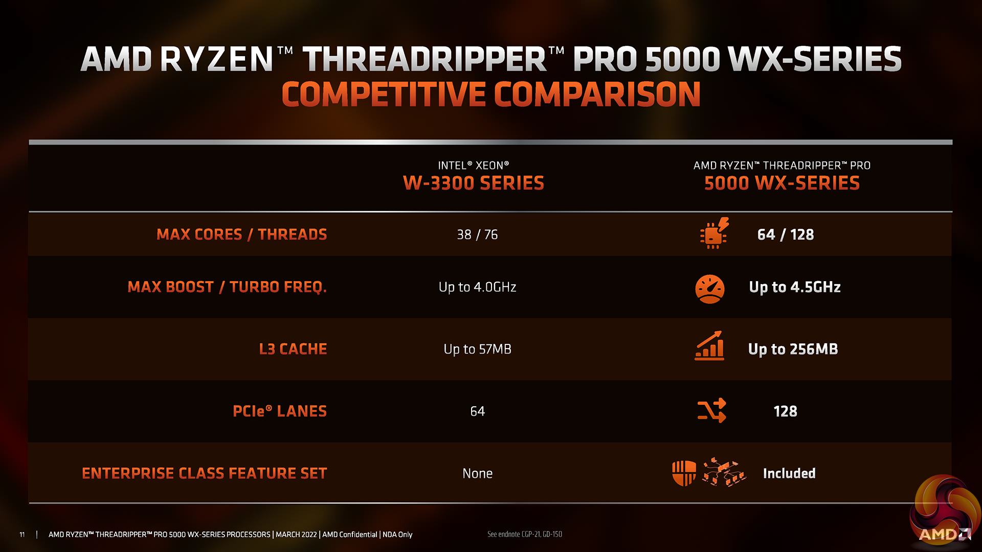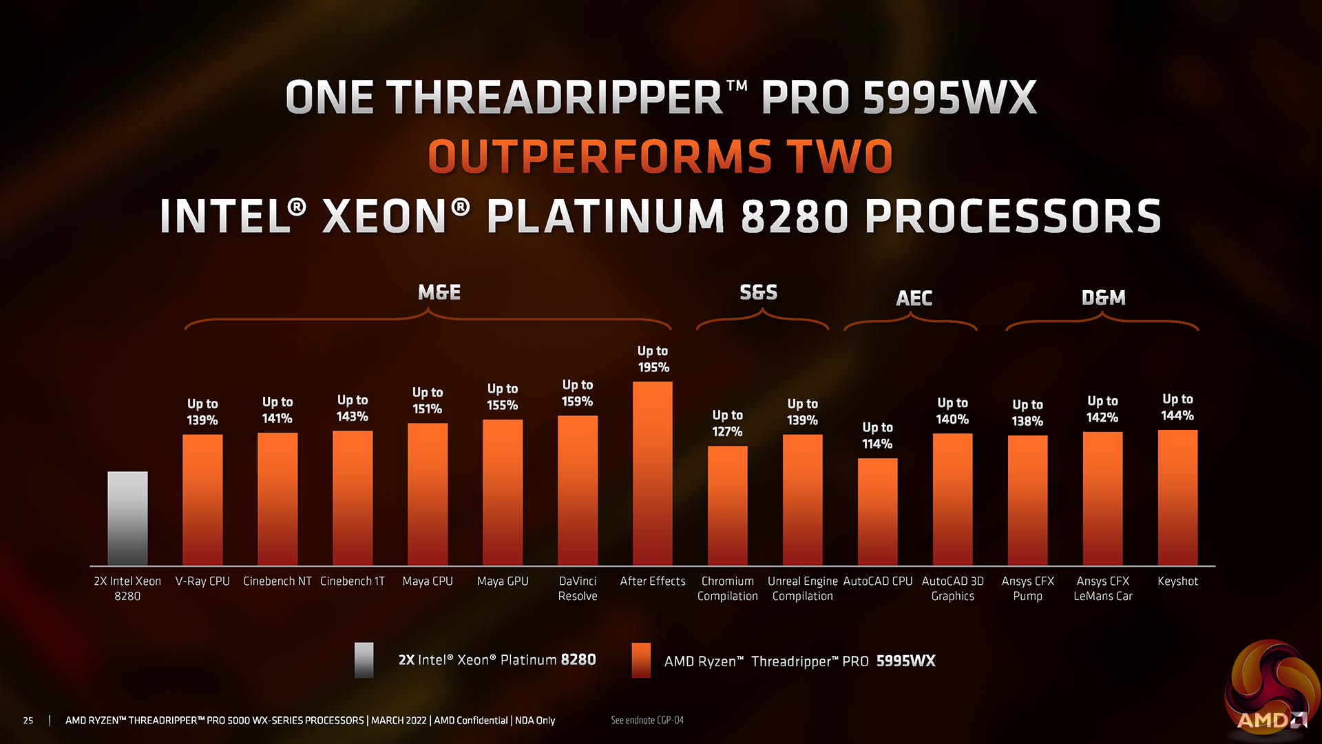 AMD is keen to highlight the performance benefits of its Ryzen Threadripper Pro 5000WX-series chips in some common use cases and applications versus Intel Xeon 1P and 2P competitors.