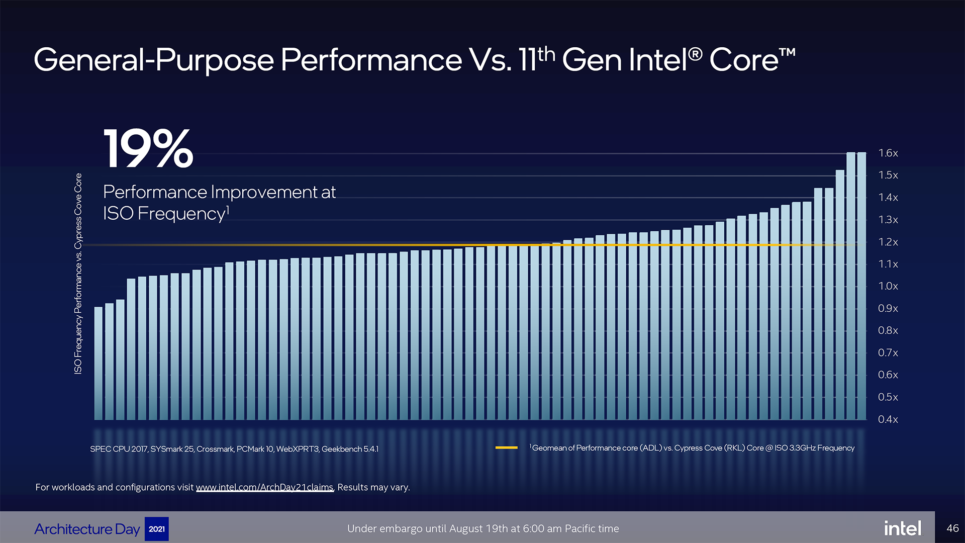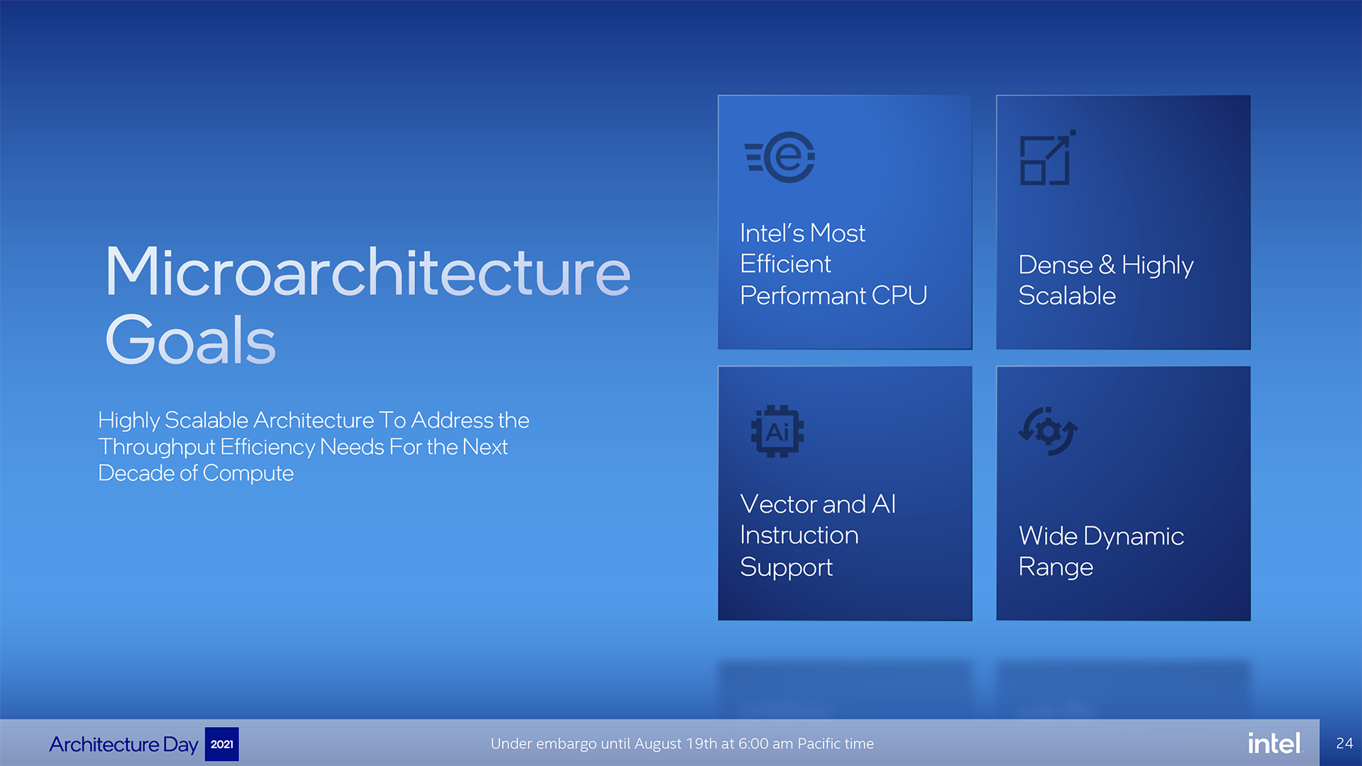 Of course, Intel is making desktop/laptop/data centre processors in some configurations. So, while efficient and strong low power usage is important, the ability to offer high levels of x86 performance is critical. That is where Intel highlights the ‘Performance’ x86 core – with one of its goals to ‘deliver a step function in general purpose CPU performance’.