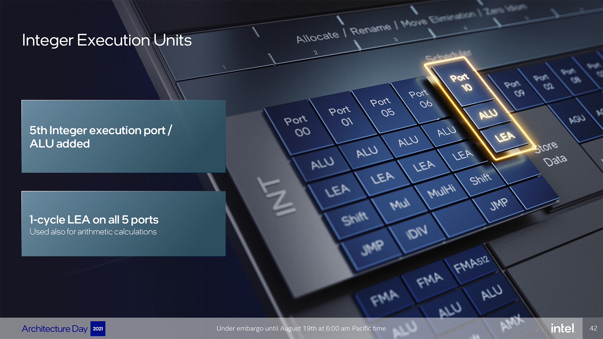 One notable point, however, is the FMA units supporting FP16 data types. FP16 is added Intel AVX512, and this is notable because AMD does not currently support AVX512 instruction sets like Intel does. That is perhaps more important for data centre use cases, despite Intel’s attempts to show off AVX512-infused AI acceleration on its Tiger Lake and the likes laptop processors with specific supported software (that has had heavy Intel involvement).
