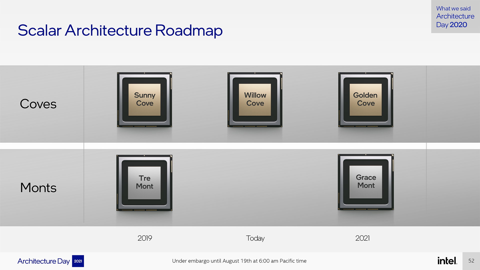 According to the roadmap, the architecture technologies to be used in Alder Lake – Golden Cove and Gracemont – are still scheduled for 2021 release. So, we should expect to see these in the coming months.