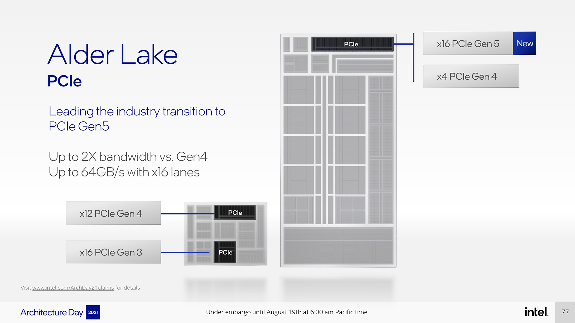 And in terms of platform capabilities, this looks to be on particular area where Alder Lake will be strong. This new LGA 1700 socket processor will be the first consumer desktop platform to feature support for DDR5 memory and PCIe Gen 5. And Intel also highlights Thunderbolt 4 and Wi-Fi 6E support, though they will also be at motherboard manufacturer discretion for the desktop parts.