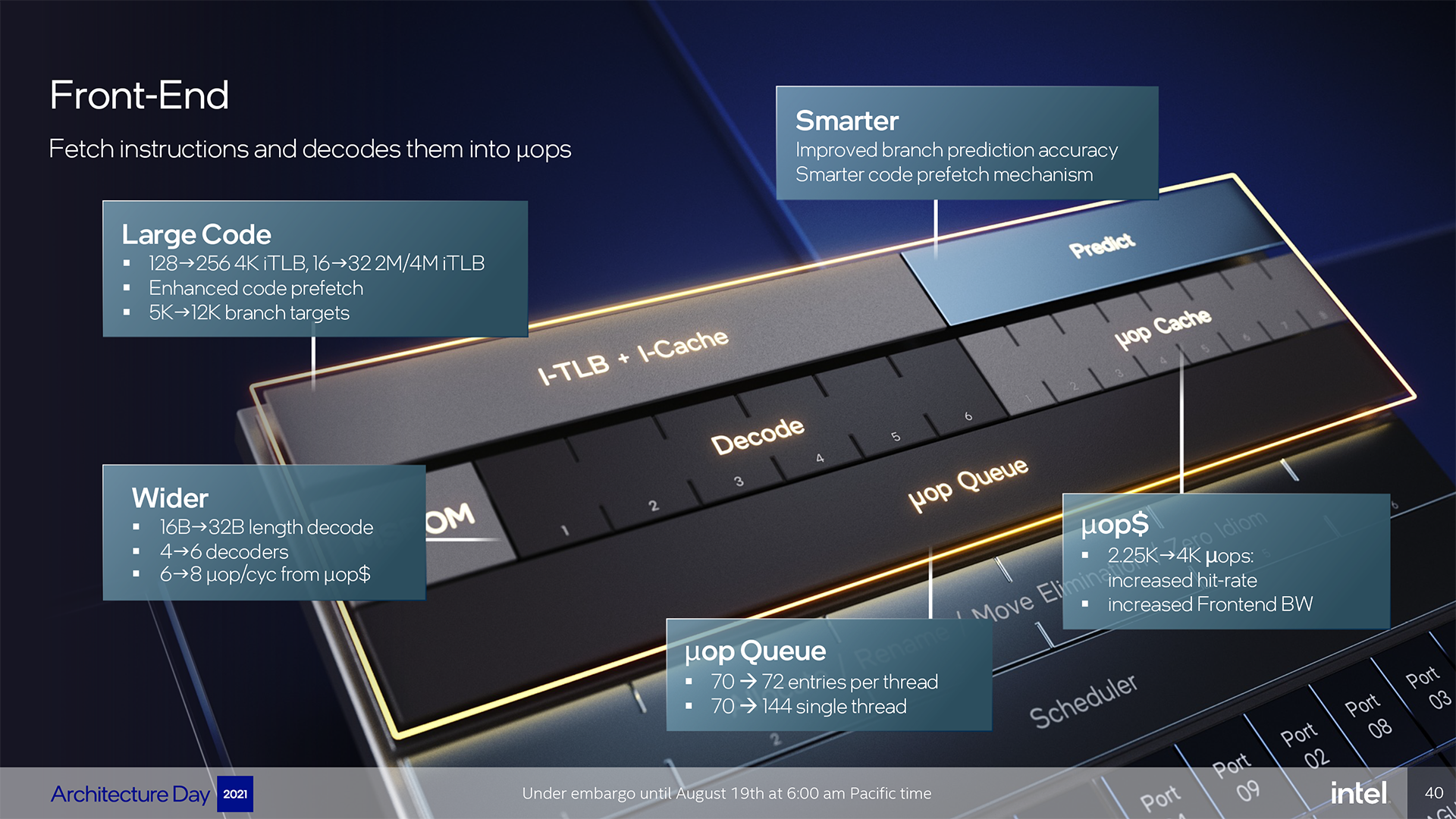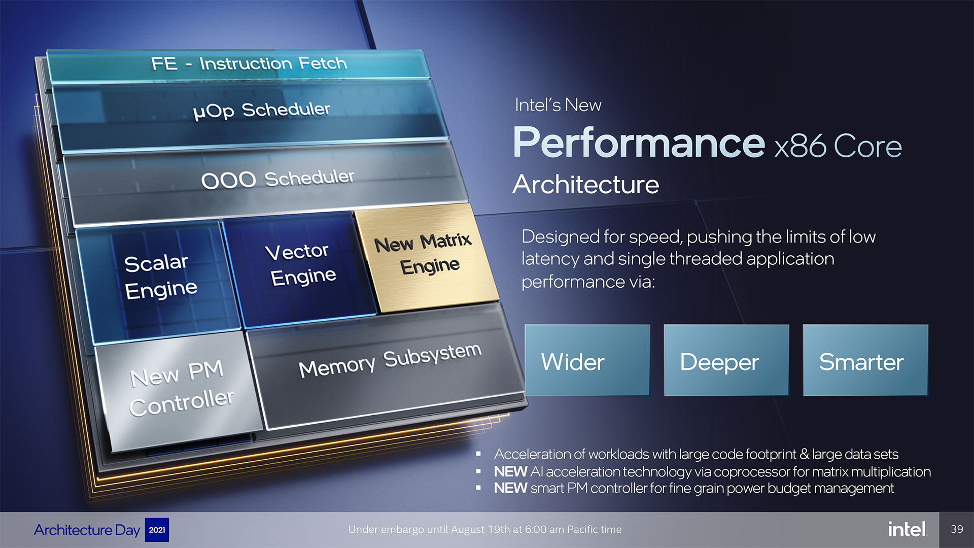 According to Intel, the Performance x86 Core ‘deigned for speed, pushing the limits of low latency and single threaded application performance via Wider, Deeper, Smarter’. That point relating to single threaded application performance is interesting, we will have to wait and see what this means for multi-threaded performance.