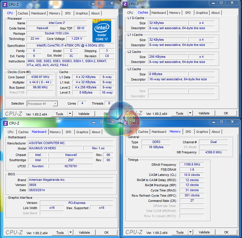 - Intel Core i7 4790K ‘Devil's Canyon' (Engineering Sample) @ 4.4GHz (stock MCT) & 4.6GHz (1.250V BIOS – maximum 24/7 stable OC)