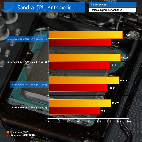 Sandra's processor arithmetic test shows how increased CPU frequency can enhance the speed at which calculations are carried out.