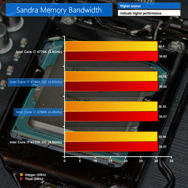 As we have already pointed out, the 4790K still uses the underlying Haswell micro-architecture, hence memory bandwidth results show very little variation between chips.