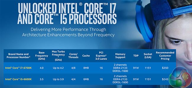 Retail pricing is almost identical to the Haswell and Devil's Canyon unlocked i5 and i7 SKUs. Expect the i5-6600K to sell for around £190-210 and the i7-6700K for around £290-320.