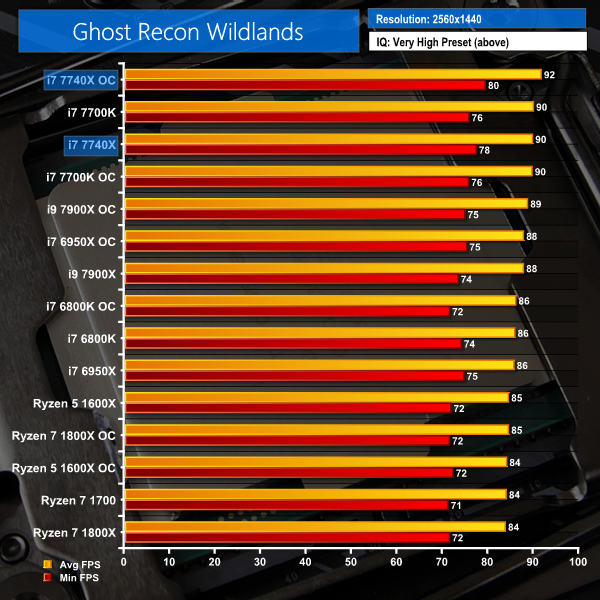 We supplement the 1080p gaming results with a pair of games tested at 1440P and 4K. We chose Ghost Recon Wildlands and GTA V as they are computationally-heavy, open-world games with good built-in benchmarks.