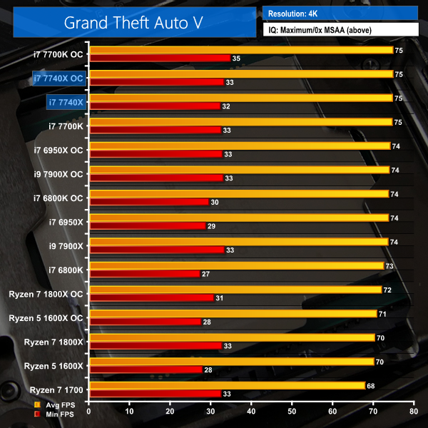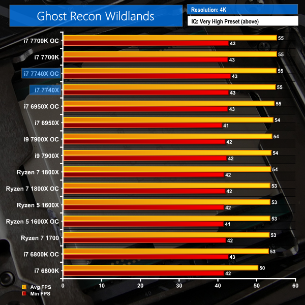 4K60 gamers are spoilt with choice when it comes to purchasing a CPU. There's little performance difference between all of the chips on display at this resolution where GPU horsepower is in high demand. Kaby Lake-X is up there amongst the fastest options at 4K but it isn't necessarily the best choice if you also want to stream gameplay at the same time.