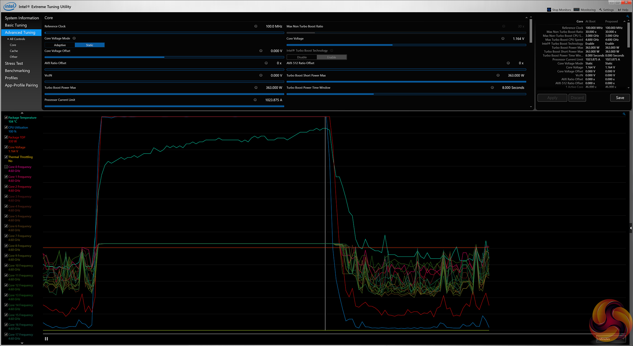 As we showed for our XTU screenshots, the all-core frequency of the Core i9-10980XE is 3.8GHz. The exception there is with AVX workloads whereby a frequency reduction is applied to compensate for the increased power demand of the advanced instruction set.