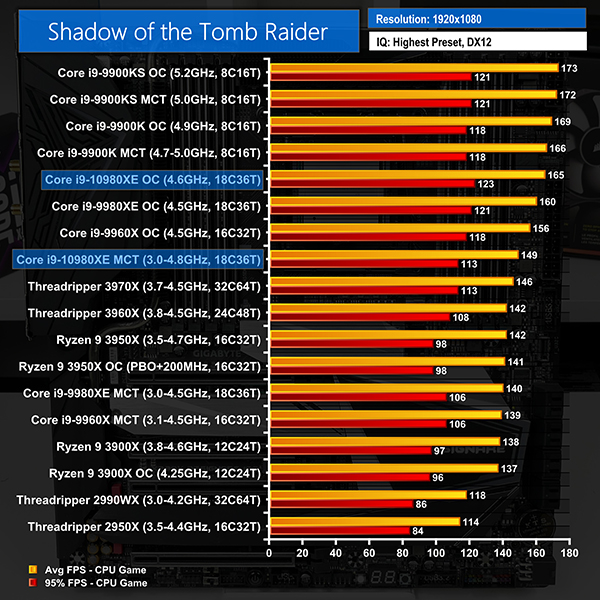 While you clearly shouldn’t be buying any HEDT CPU if you’re only interested in gaming, and gaming alone, there’s no reason why you can’t enjoy a solid experience with the Core i9-10980XE when you shut off from work for the day. And you won’t even need the system to be rebooted into Game Mode, like we see is necessary for some games to play well on Ryzen Threadripper (albeit less frequently with the newer Zen 2-based versions).