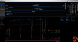 Our logs showed 220W software-reported CPU package power when running at 1.38-1.392V CPU VCore. That’s a lot of thermal energy for a CPU cooler to move away from a mainstream-sized CPU heatspreader.