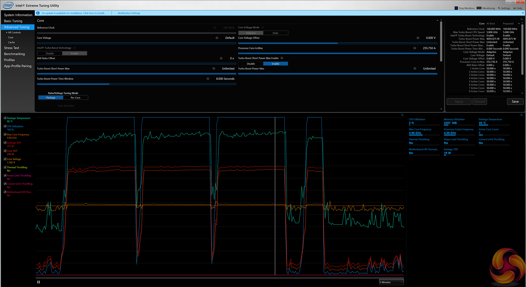 Intel claims that the warranty decision is due to the limited volume of the part. That's disappointing when the cheaper Core i9-9900K is warranted for 3 years of usage. One would hope that the limited volume of the part is indeed the reason for the 1-year warranty, and not longevity concerns born out of pushing the frequency to the dizzying heights of 5GHz.