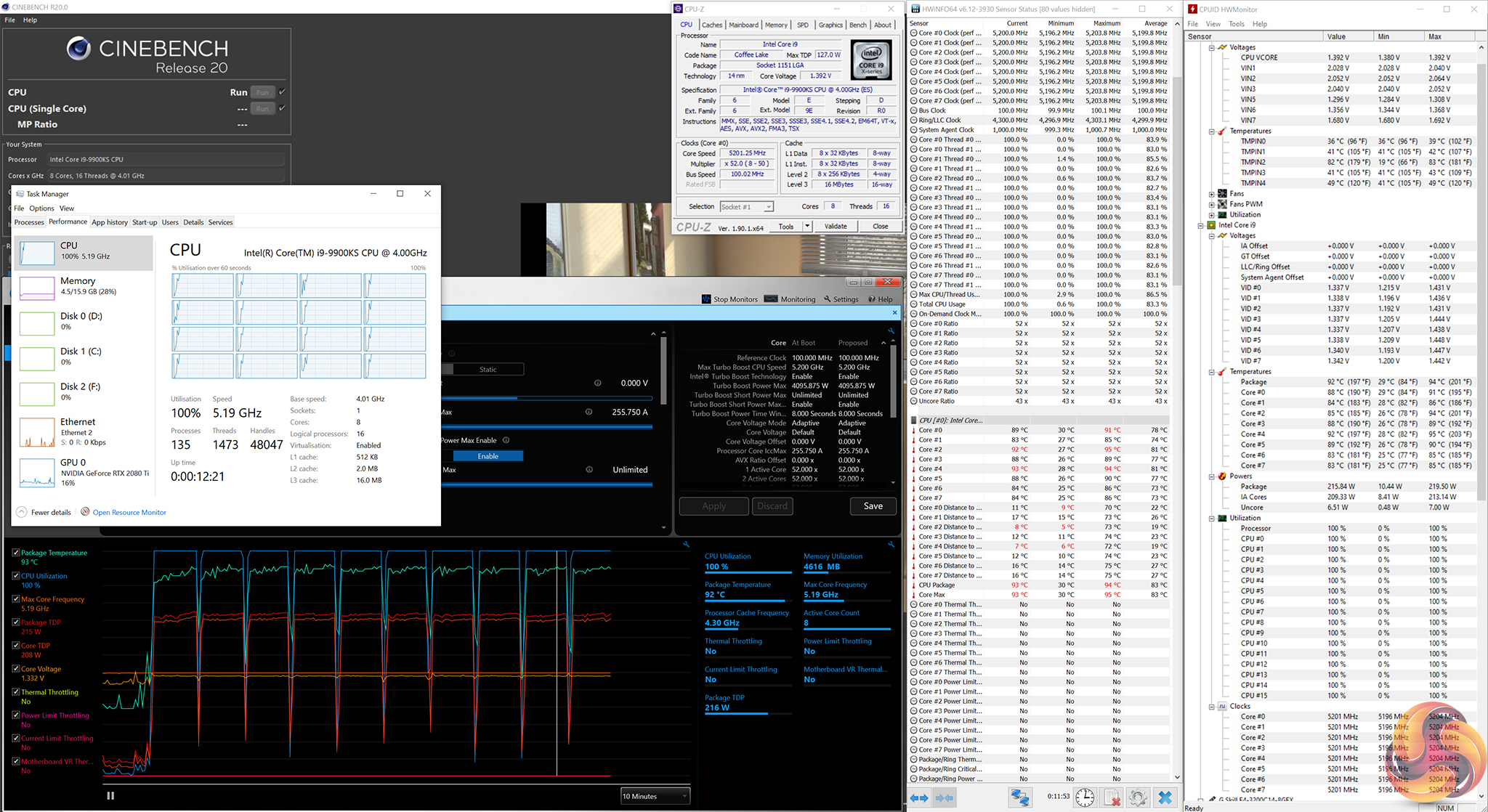 - Core i9-9900KS CPU: Intel Core i9-9900KS ‘Coffee Lake' 8 cores, 16 threads (5.2GHz @ 1.375V overclocked).