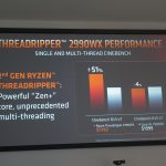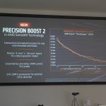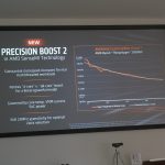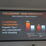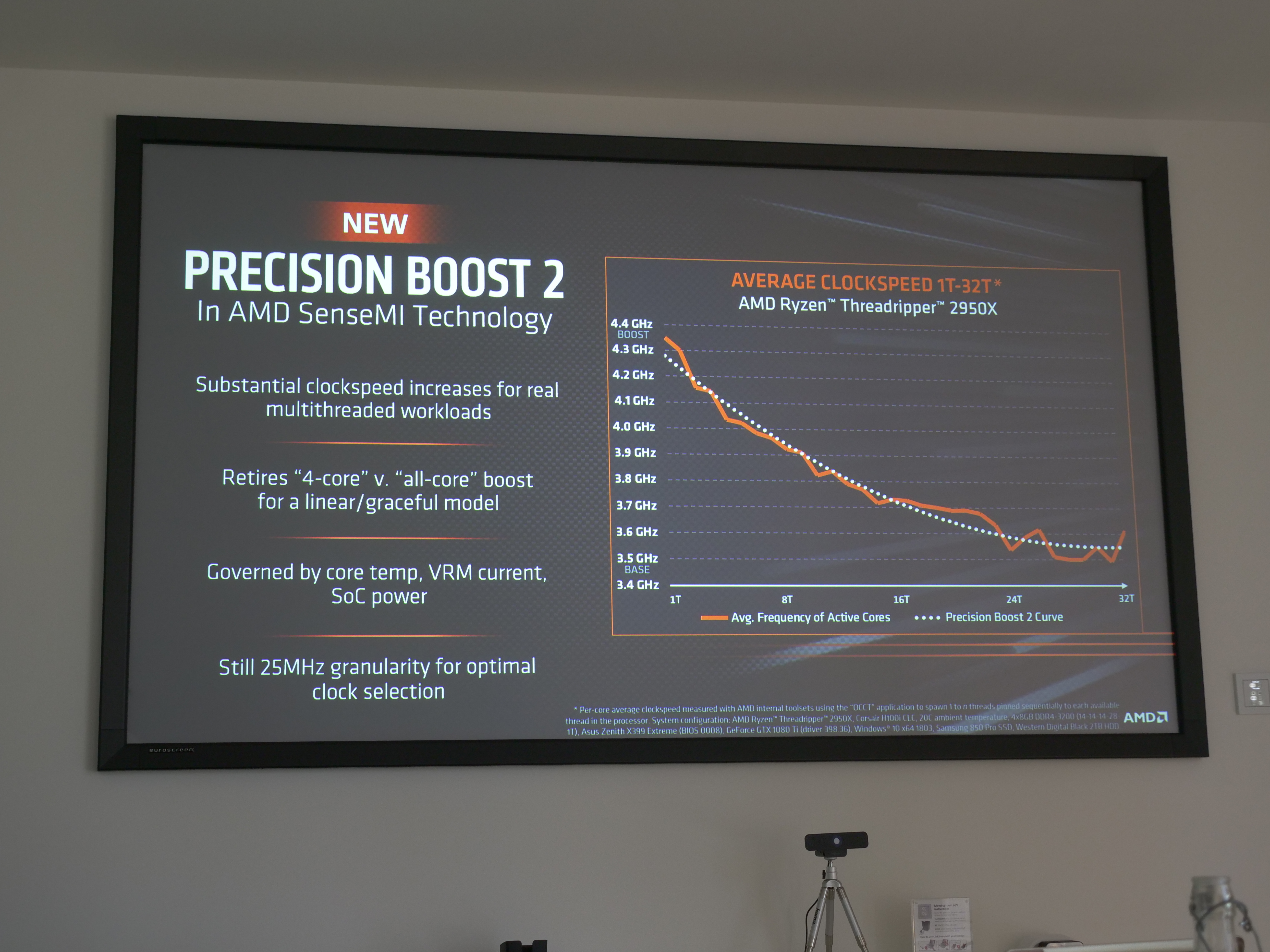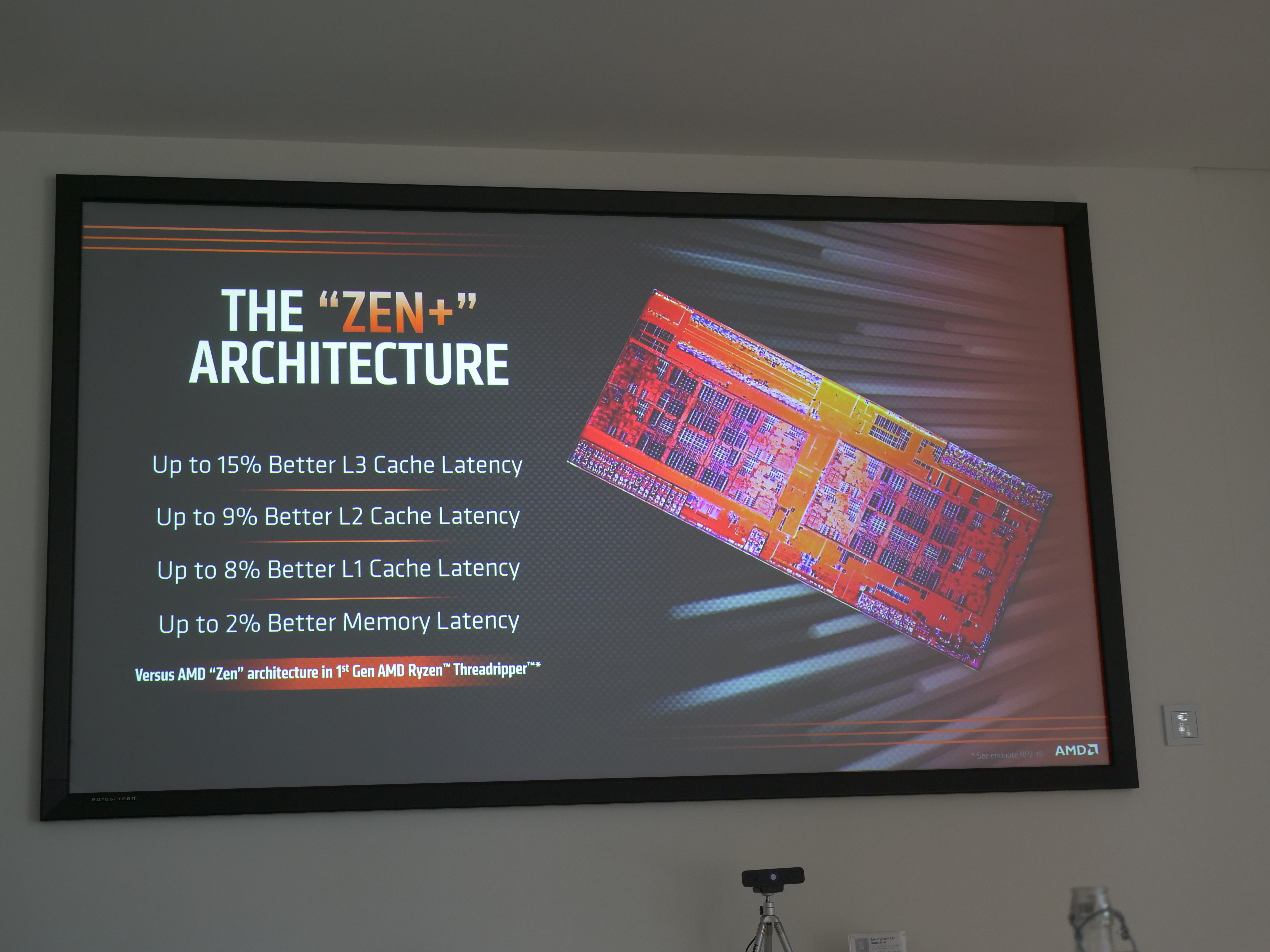 According to AMD's presentation, Threadripper 2nd Gen will have up to 15 percent better L3 cache latency, up to 9 percent better L2 cache latency, up to 8 percent better L1 cache latency and up to 2 percent better memory latency compared to 1st Gen. Top clock speeds have been raised from 4.2GHz to 4.4GHz, and a 80-120mV vcore reduction is in place at any clock. Precision Boost 2 is in place, which scales boost clock speeds linearly in chunks of 25MHz.