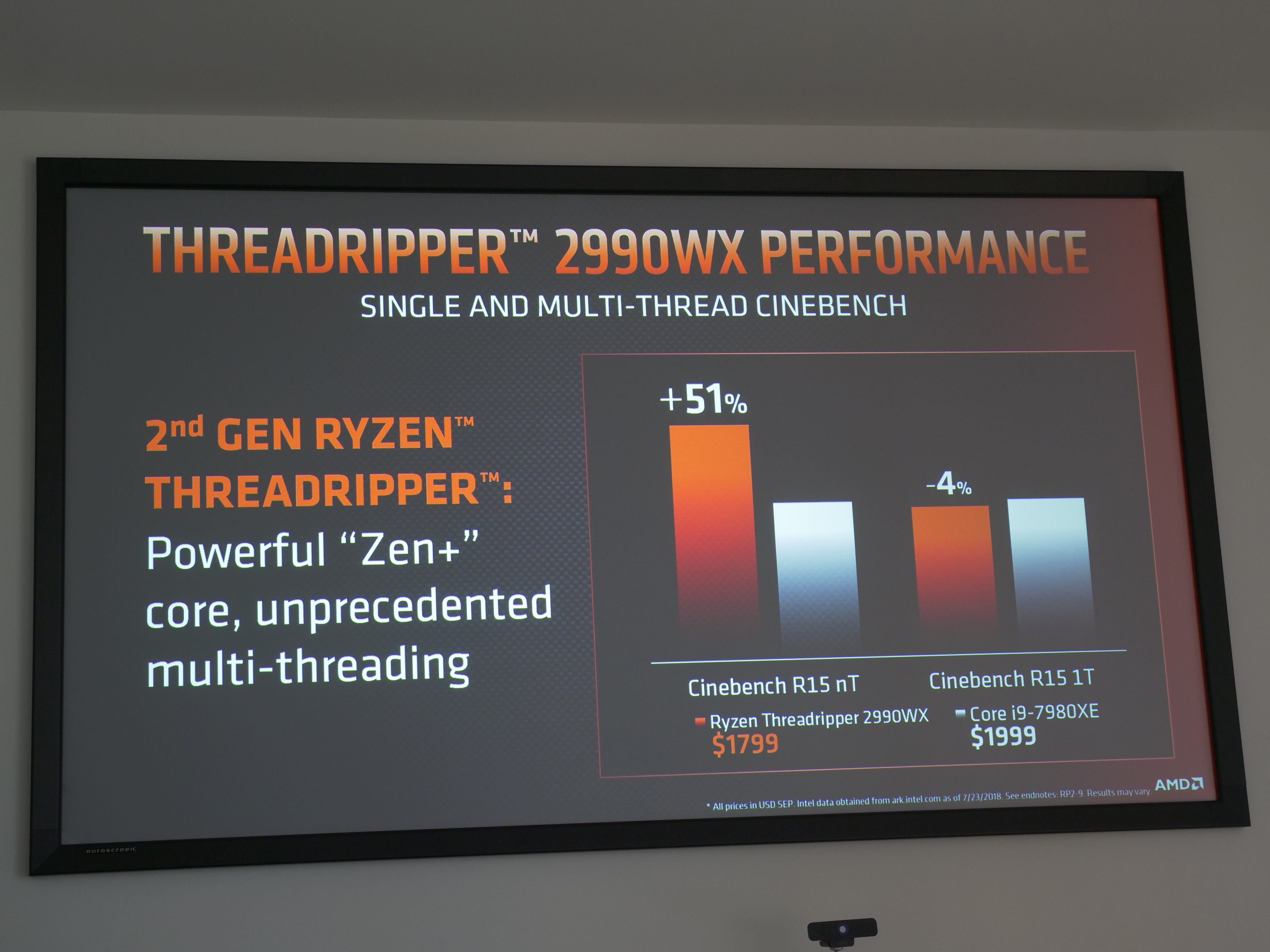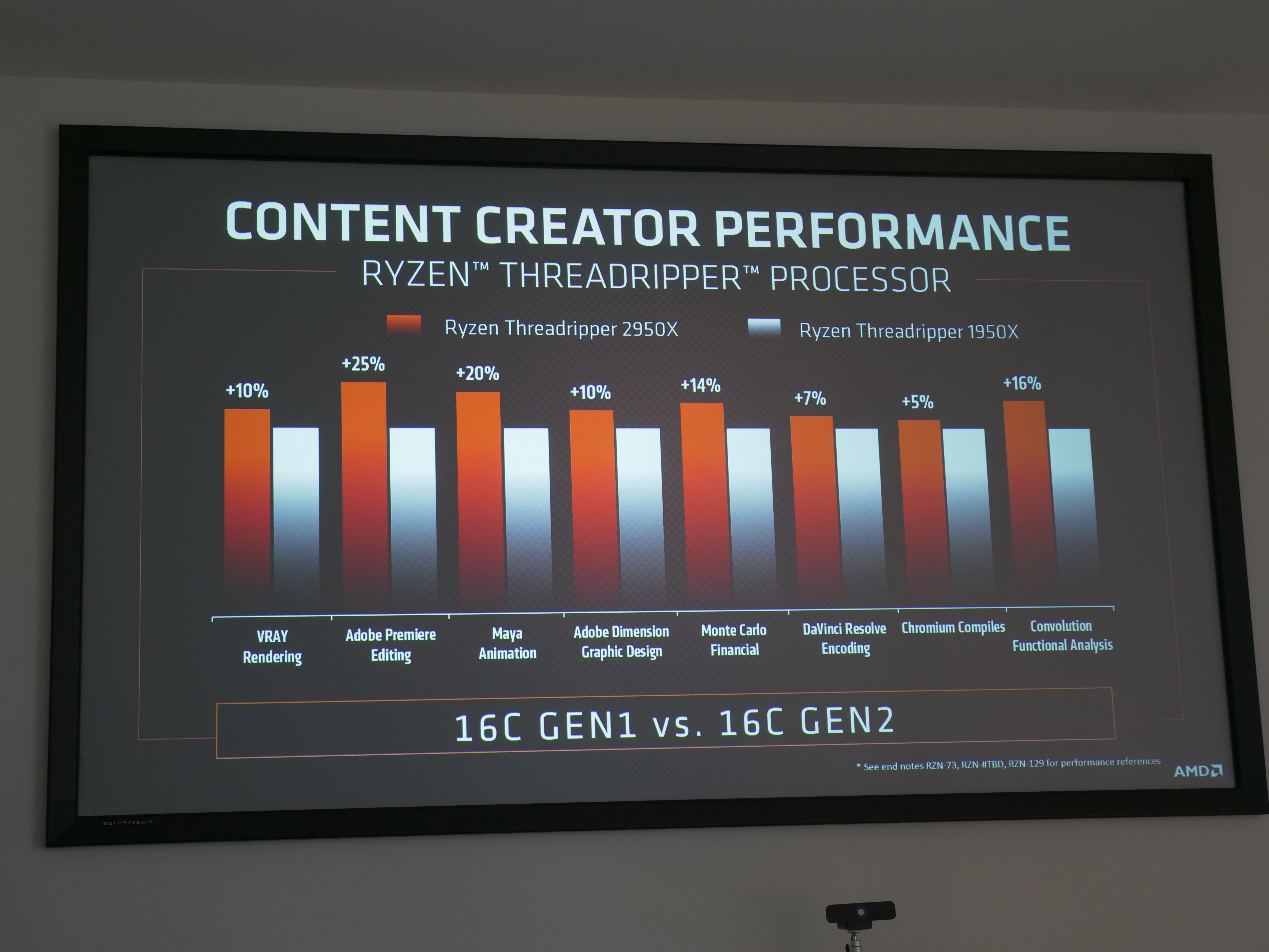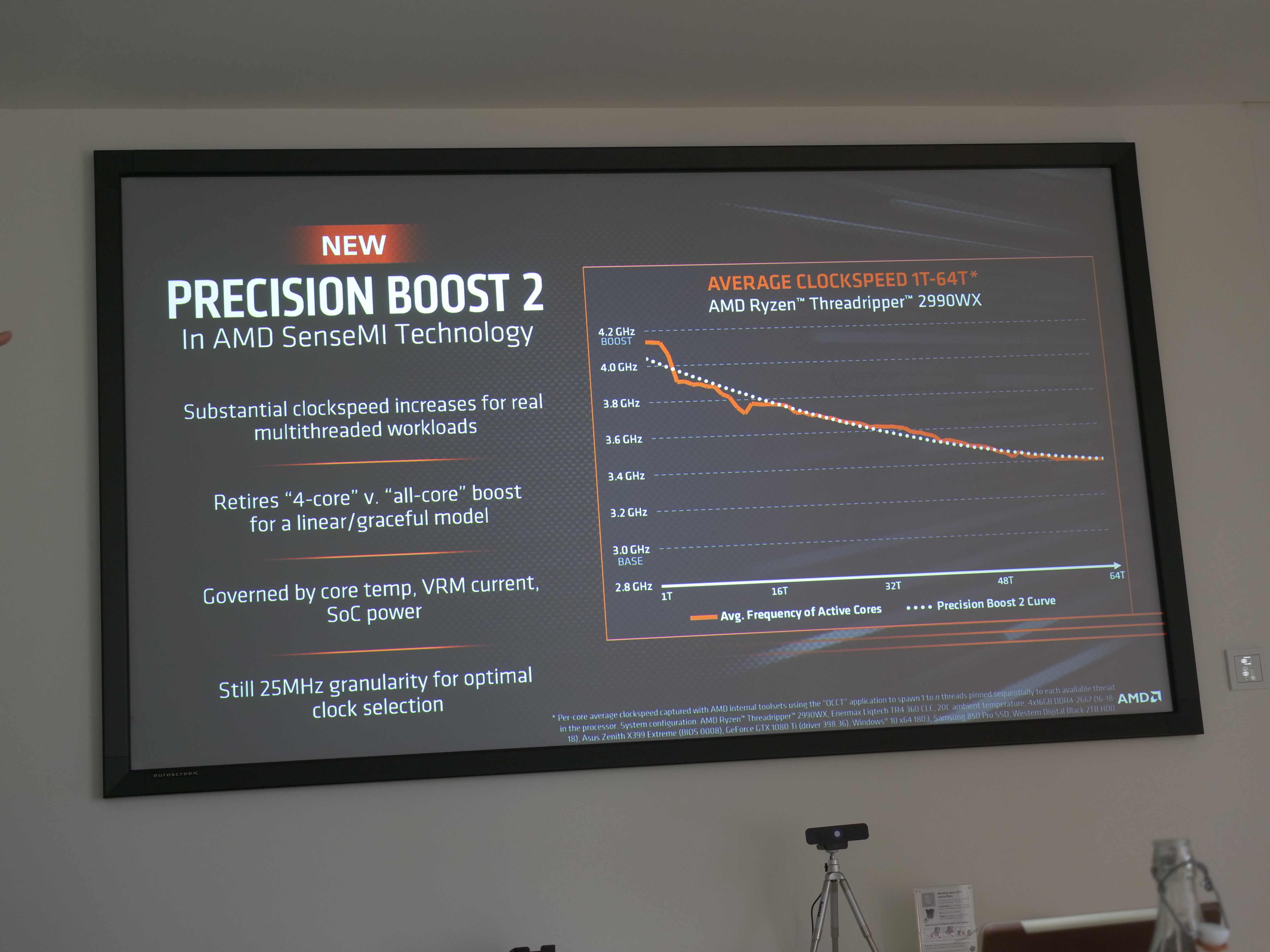At a briefing in London last week, we learned that AMD's 32C/64T Threadripper has been planned for a long time. However, the team required the 12nm process and 2nd Gen Boost algorithm to get it up to standard. Performance scales with TDP, shown by the jump from 180W on the Threadripper 1950X to 250W on Threadripper 2990WX.