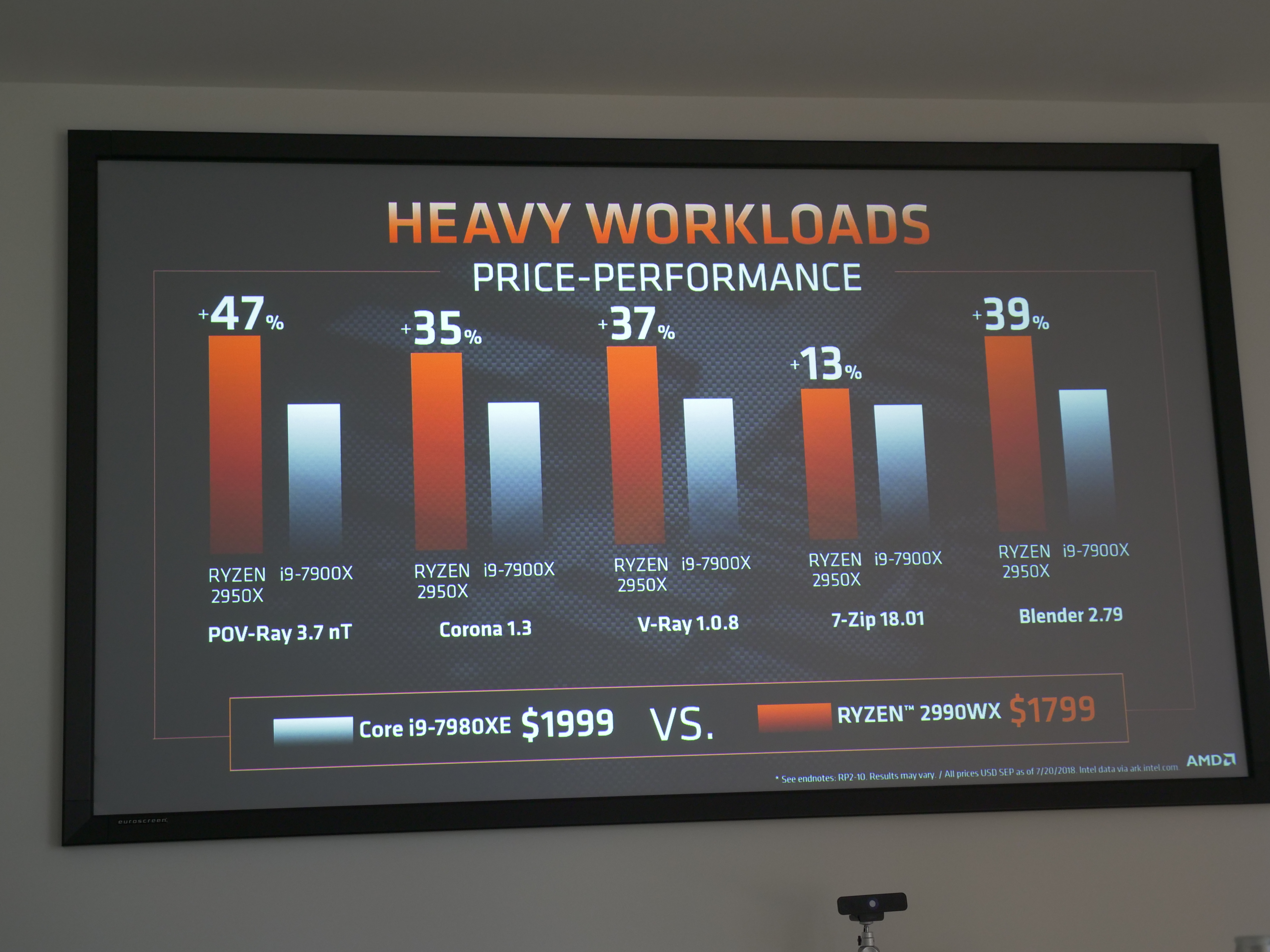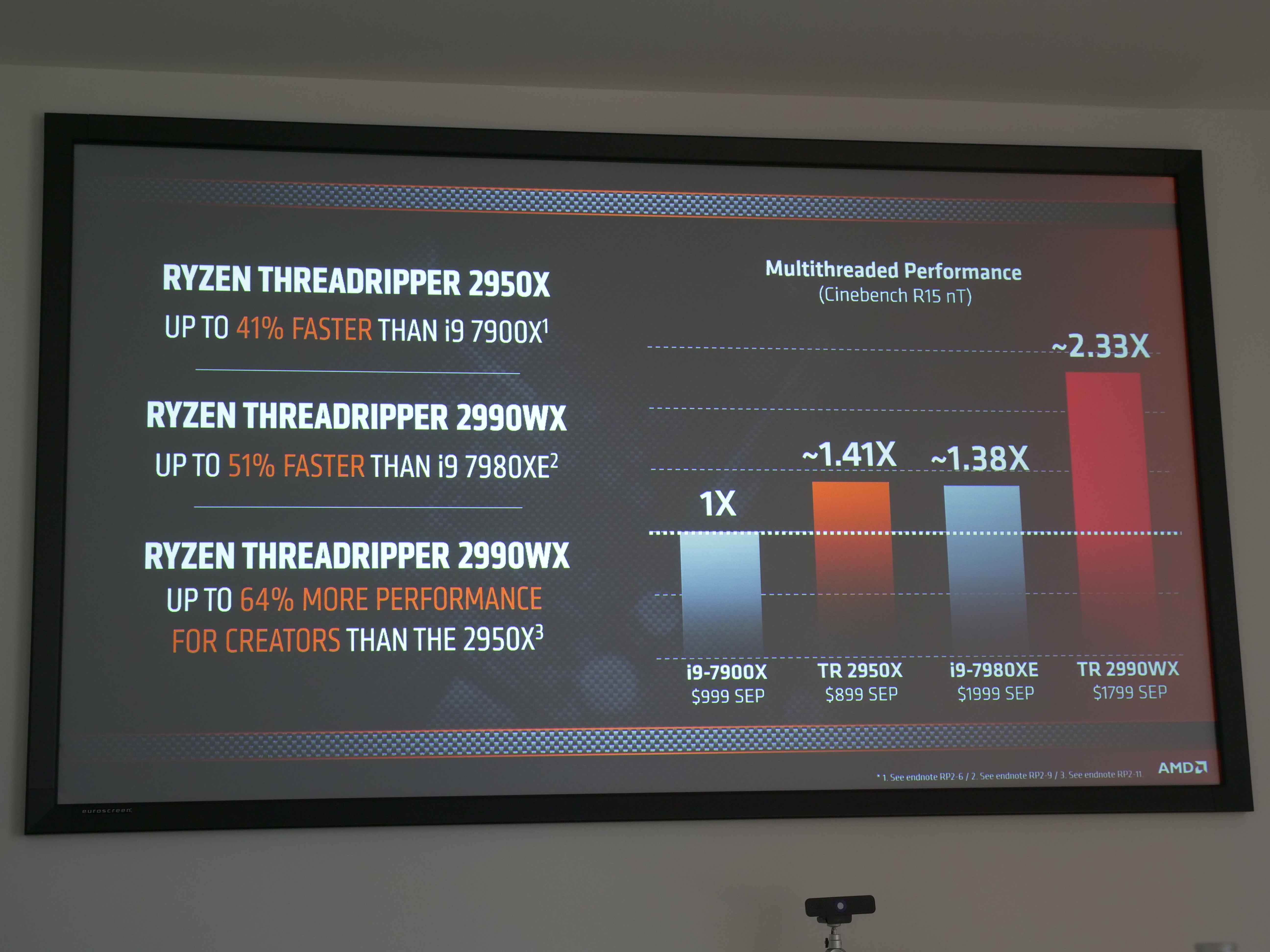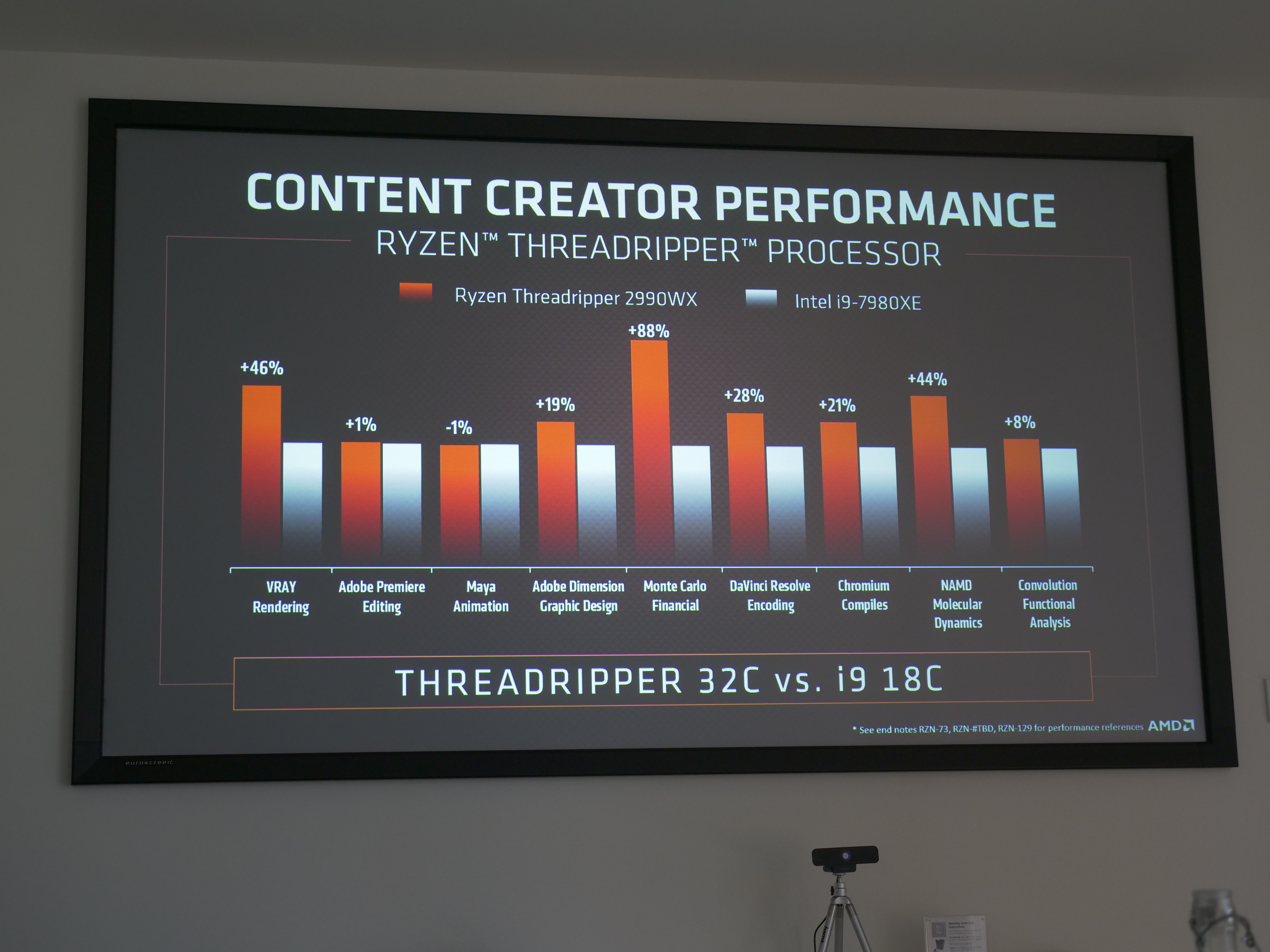 At a briefing in London last week, we learned that AMD's 32C/64T Threadripper has been planned for a long time. However, the team required the 12nm process and 2nd Gen Boost algorithm to get it up to standard. Performance scales with TDP, shown by the jump from 180W on the Threadripper 1950X to 250W on Threadripper 2990WX.