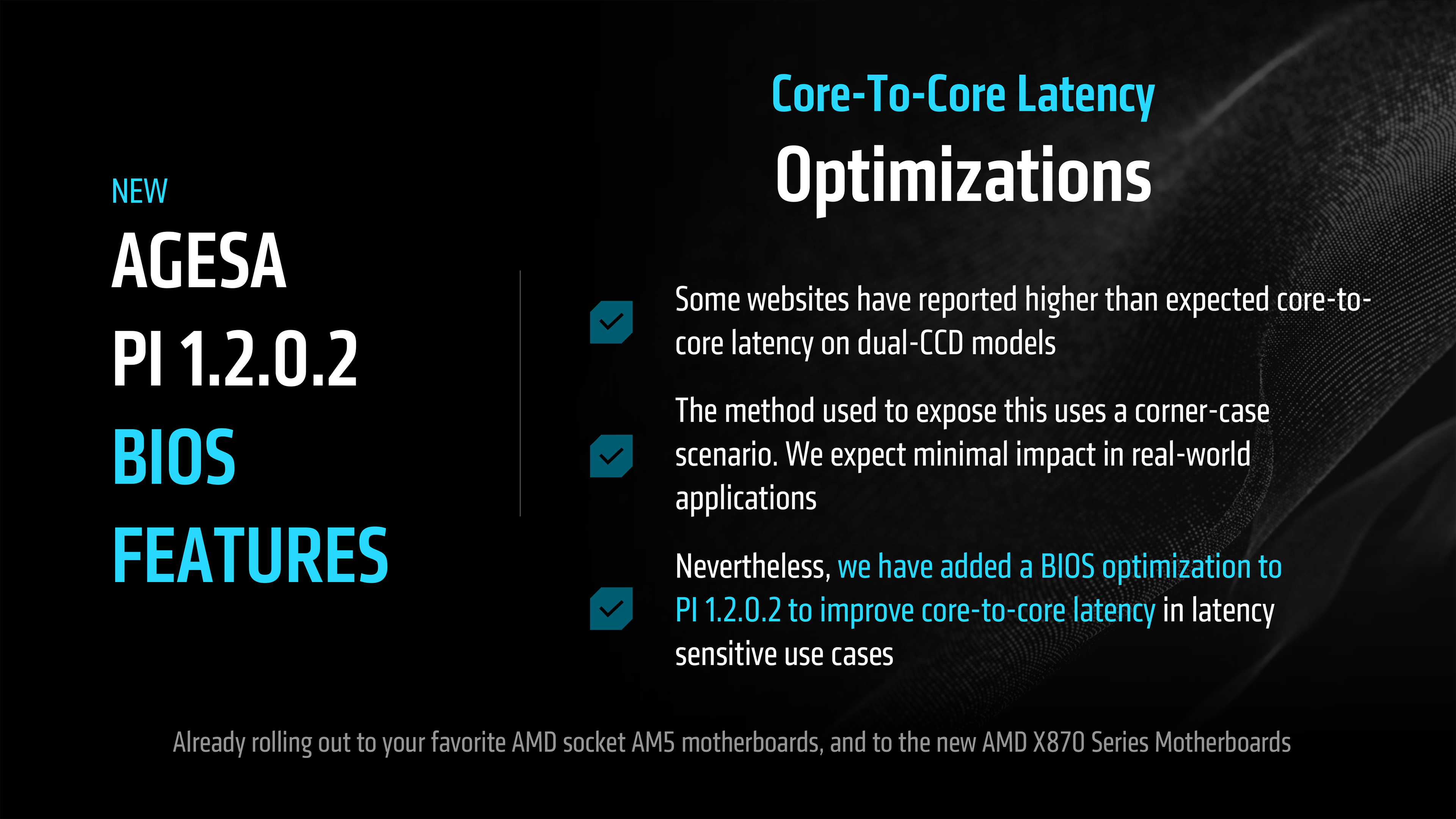 More importantly though, the new AGESA update fixes core latency on certain Zen 5 processors, which should in turn help with performance and keeping interruptions or hangs to a minimum.