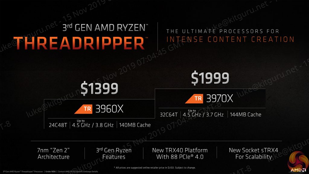 KitGuru Says: AMD's 3rd Gen Threadripper processors are pricey, especially compared to the first generation and even Intel's new Cascade Lake-X CPUs. However, there is no denying that there is also a huge performance bump arriving with it. What do you all think of the new HEDT CPU launches today from AMD and Intel? Are any of you planning to pick one up?