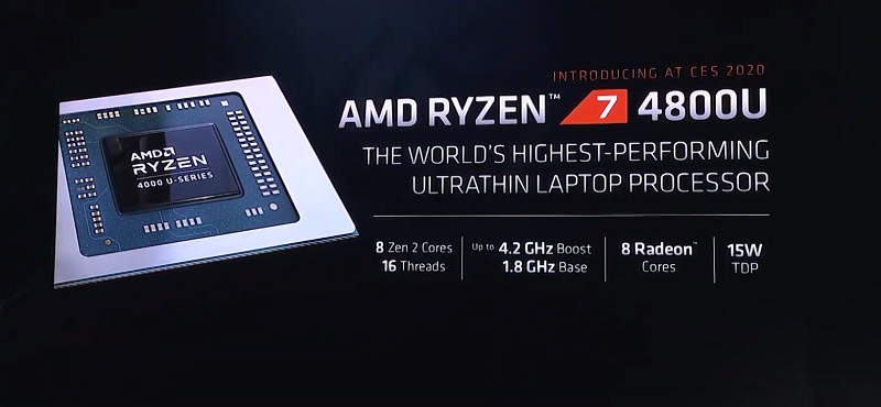 The Ryzen 7 4800U comes with eight Zen 2 cores, 16 threads, a 1.8GHz base speed, 4.2GHz boost speed, an additional eight ‘Radeon' cores for the integrated GPU and just a 15W TDP. Interestingly, the Radeon cores here are based on the Vega architecture but through some additional design work, AMD has managed to generate a 59% performance boost over the previous generation.