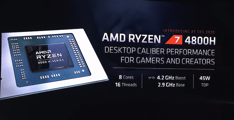 The AMD Ryzen 4000 H-series is AMD's high power variant aimed at gamers and professional creators. At the top of the pile is the Ryzen 7 4800H, which also sports 8-cores and 16-threads but has a higher 45W TDP and 2.9GHz/4.2GHz base/boost clock speeds.