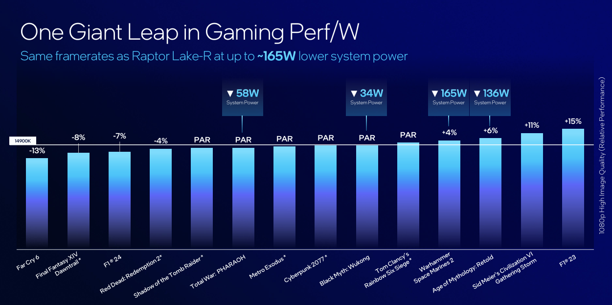 With Arrow Lake, Intel has put its primary focus on power consumption, leading to an up to 58 percent reduction in package power compared to Raptor Lake. However, this does come at a big of a performance cost, with the Core Ultra 9 285K hitting lower benchmarks in certain titles compared to the Core i9-14900K. However, in most cases, it should be on par in gaming. We'll have to wait for reviews to analyse a wider range of gaming benchmarks to get the full picture here.