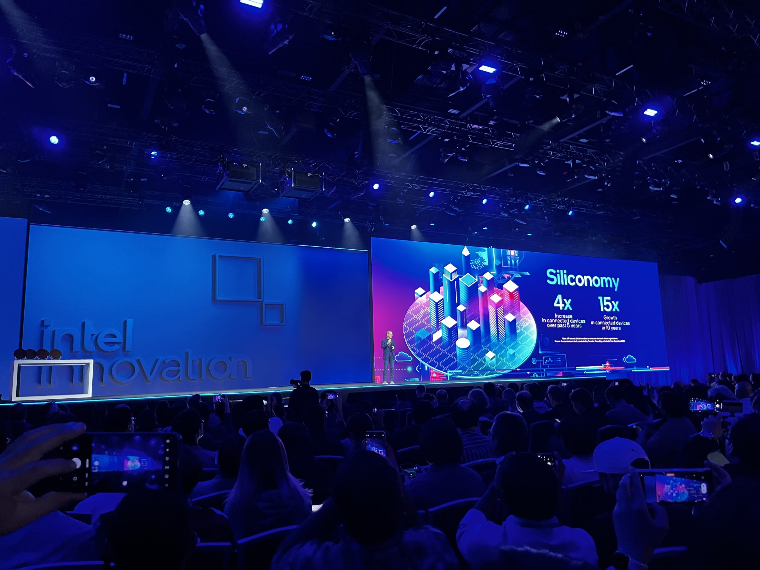 Gelsinger opened up his keynote with Intel's latest phrase – Siliconomy. Essentially, as Intel sees it, Silicon is set to drive the world's economy. Over the past five years, there has been a 4X increase in the number of connected devices and over the next ten years, that is expected to increase to 15X. This in turn opens up new opportunities for developers to grow, with a huge customer base to deliver new software innovations to. Intel hopes that its hardware and tools will be at the heart of all of that.