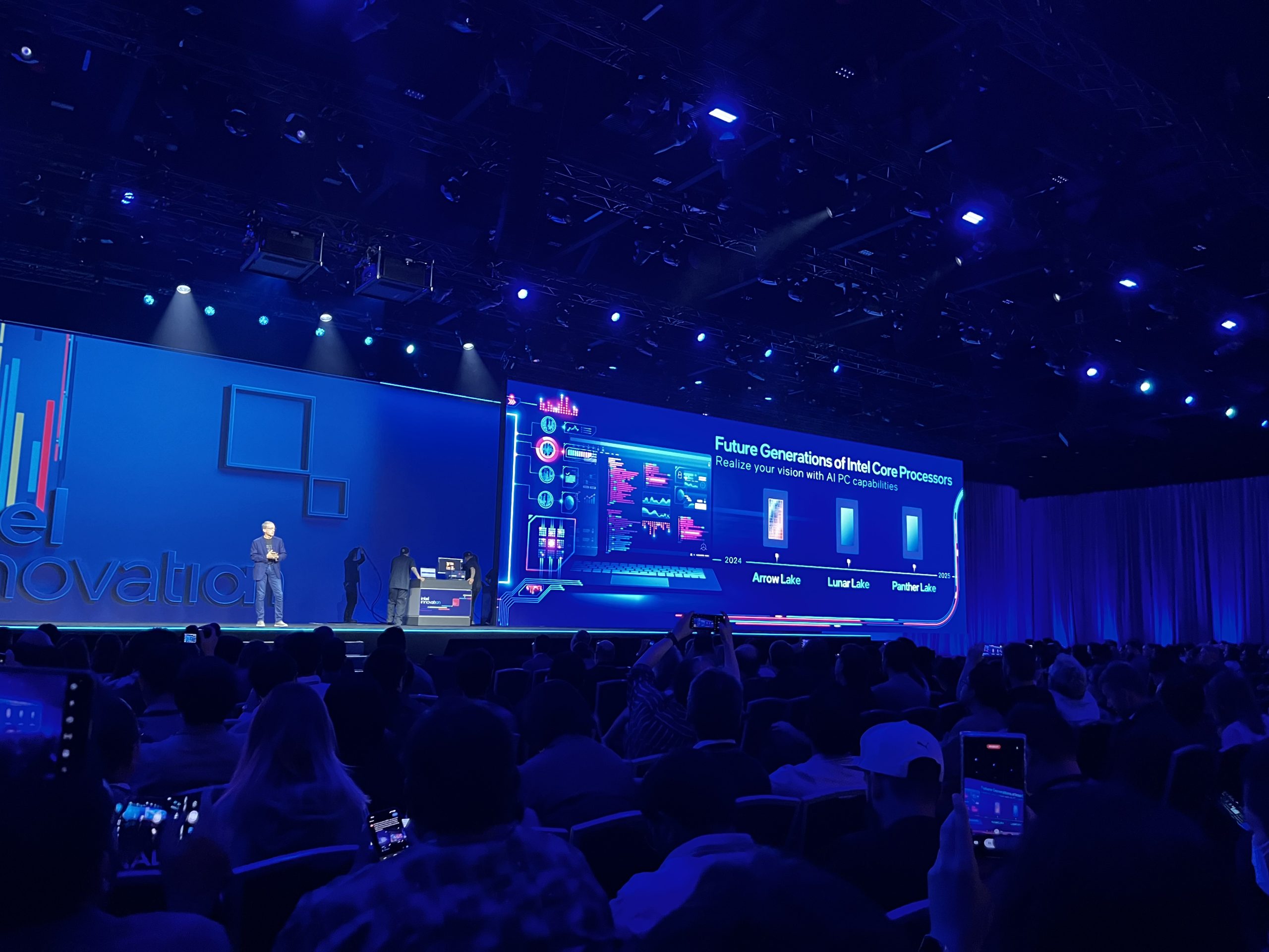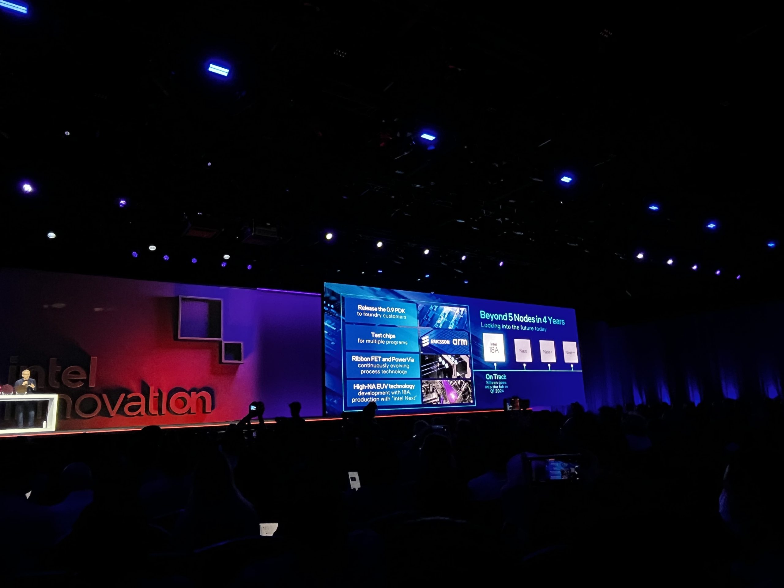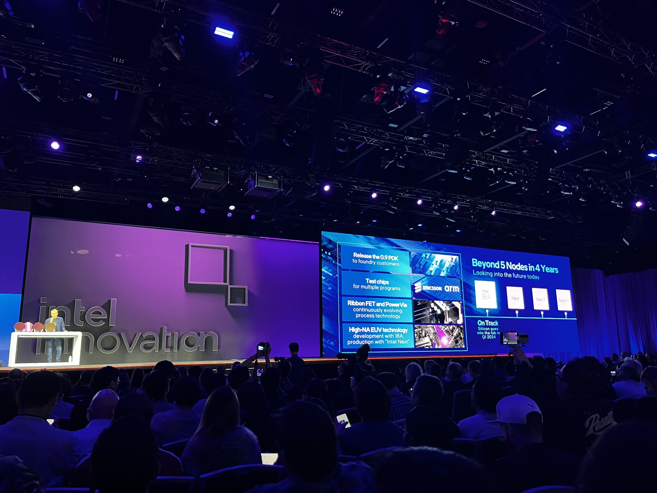 Looking ahead, Intel's Arrow Lake processors utilising the Intel 20A node are on track, with silicon shown on stage today. In 2025, we will see Panther Lake, using the Intel 18A node, completing the company's mission of five nodes in four years.