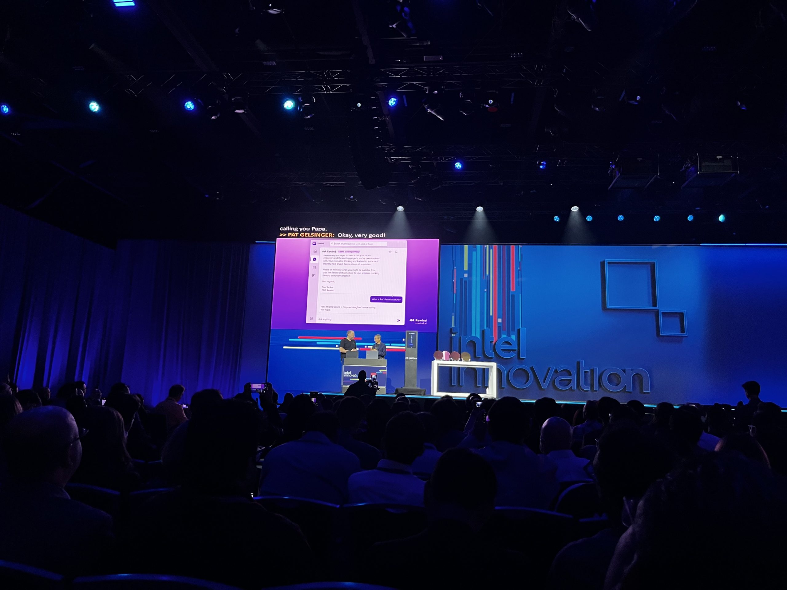 Another on-stage demo is a new app called Rewind. This is essentially an AI-powered digital assistant, capable of analysing your screen and audio to then assist you with finding information, recovering data, transcribing speech and writing emails. The key part here is that it runs locally, preserving privacy and security, rather than relying on cloud computing.