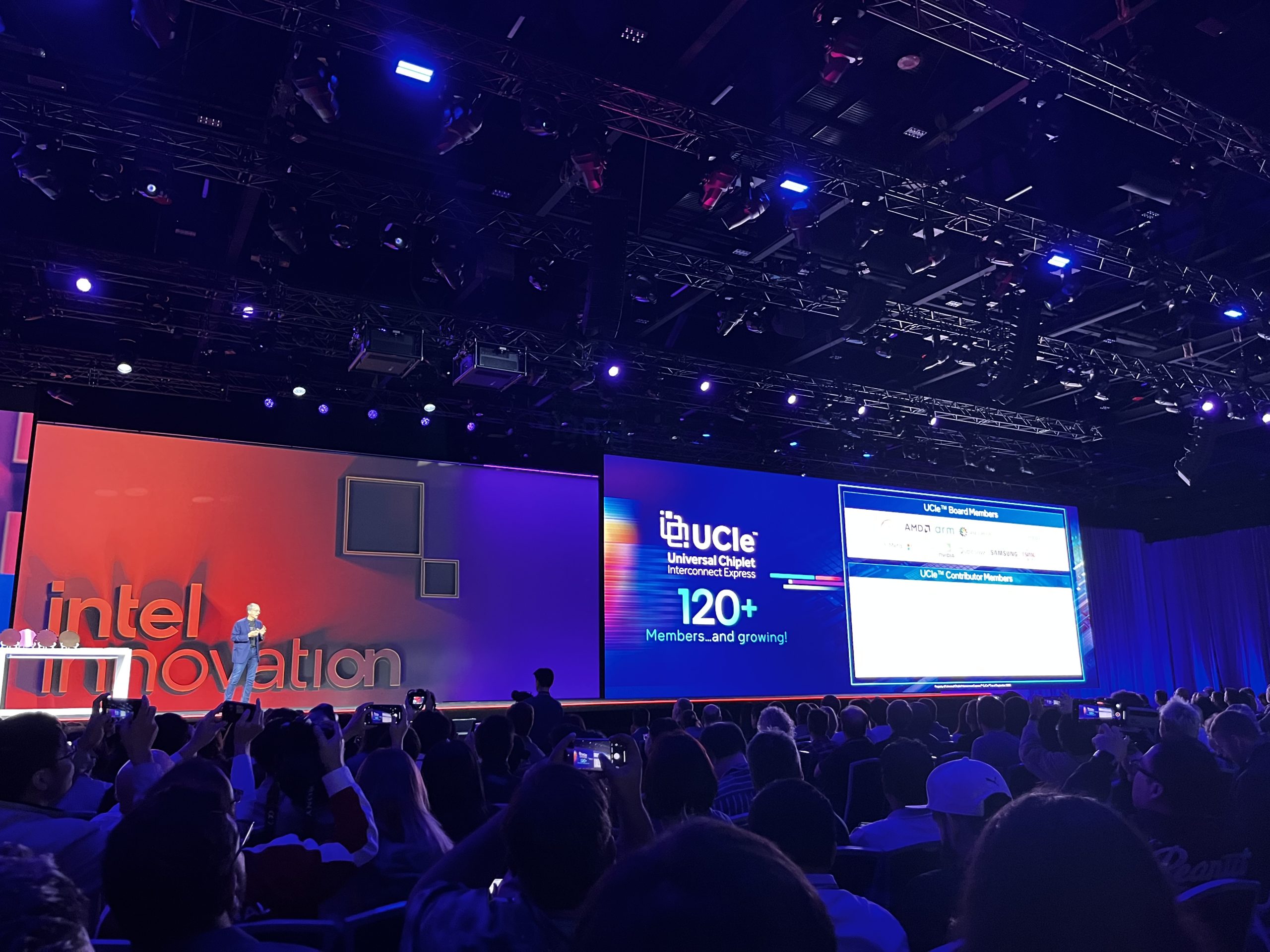 Currently, Intel is investing $100 billion into its fabrication facilities and as we saw with the launch of Intel Foundry Services, the company is looking to produce not only for itself, but for customers across the industry as well. In a Q&A after the keynote, Gelsinger noted that while Intel and Nvidia are competing in some areas, such as Intel's Gaudi AI accelerator vs. Nvidia's H100, they are still keen collaborators and partners in other areas. Gelsinger hopes that Nvidia will eventually be a Foundry Services customer and adopt the UCIe universal chiplet design, which is catching on with support from over 120+ companies.