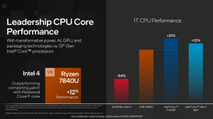 Versus the current-gen Ryzen 7 7840U, Intel claims to have leads in both single-threaded and multi-threaded workloads with its new Intel 4 node. In a set of benchmarks, we can see Intel's Core Ultra 7 155H taking the lead in PugetBench for Premiere Pro, PugetBench for Lightroom and UL Procyon Video Editing.