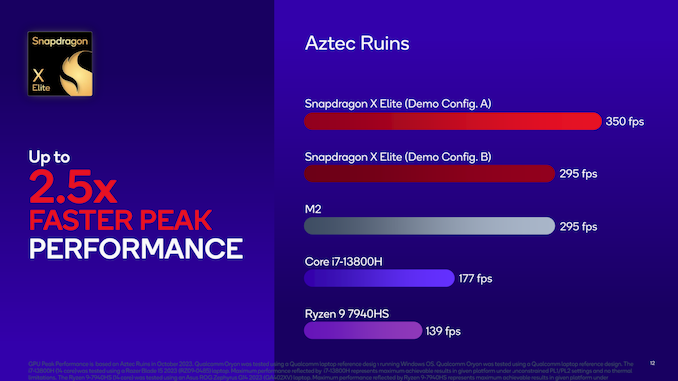 Qualcomm used its two reference design laptops for benchmarking the Snapdragon X Elite, one with an 80W TDP and the other with a 23W TDP, so we can get a look at performance at high and low power settings.