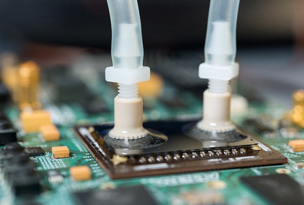 Associate professor Muhannad Bakir and graduate student Thomas Sarvey were responsible for this experiment. Together, the pair used a field-programmable gate array (FPGA) 28nm chip from Altera, with the heatsink and spreader removed. Microfluidic cooling passages were etched in to the silicon, which also incorporated silicon cylinders which measured in at 100 microns in diameter. This was all happening very close to where the chip transistors operate.