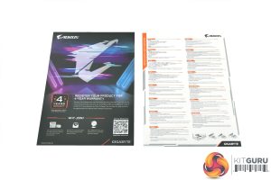 Inside, we don't get much in the way of included accessories, which is potentially disappointing for some when considering the asking price. We find a warranty note and power adaptor for the 16-pin PCIe Gen5 connector, as well as a Batman-style Aorus action figure.
