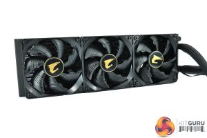 As for the AIO itself, I’ve asked Gigabyte who the OEM is but haven’t yet heard back, so I’ll update this section of the review if we do get confirmation. Speaking with KitGuru’s resident modder and reviewer James Dawson, however, he reckons the radiator looks similar to a Cooler Master design, but that’s just an educated guess right now.