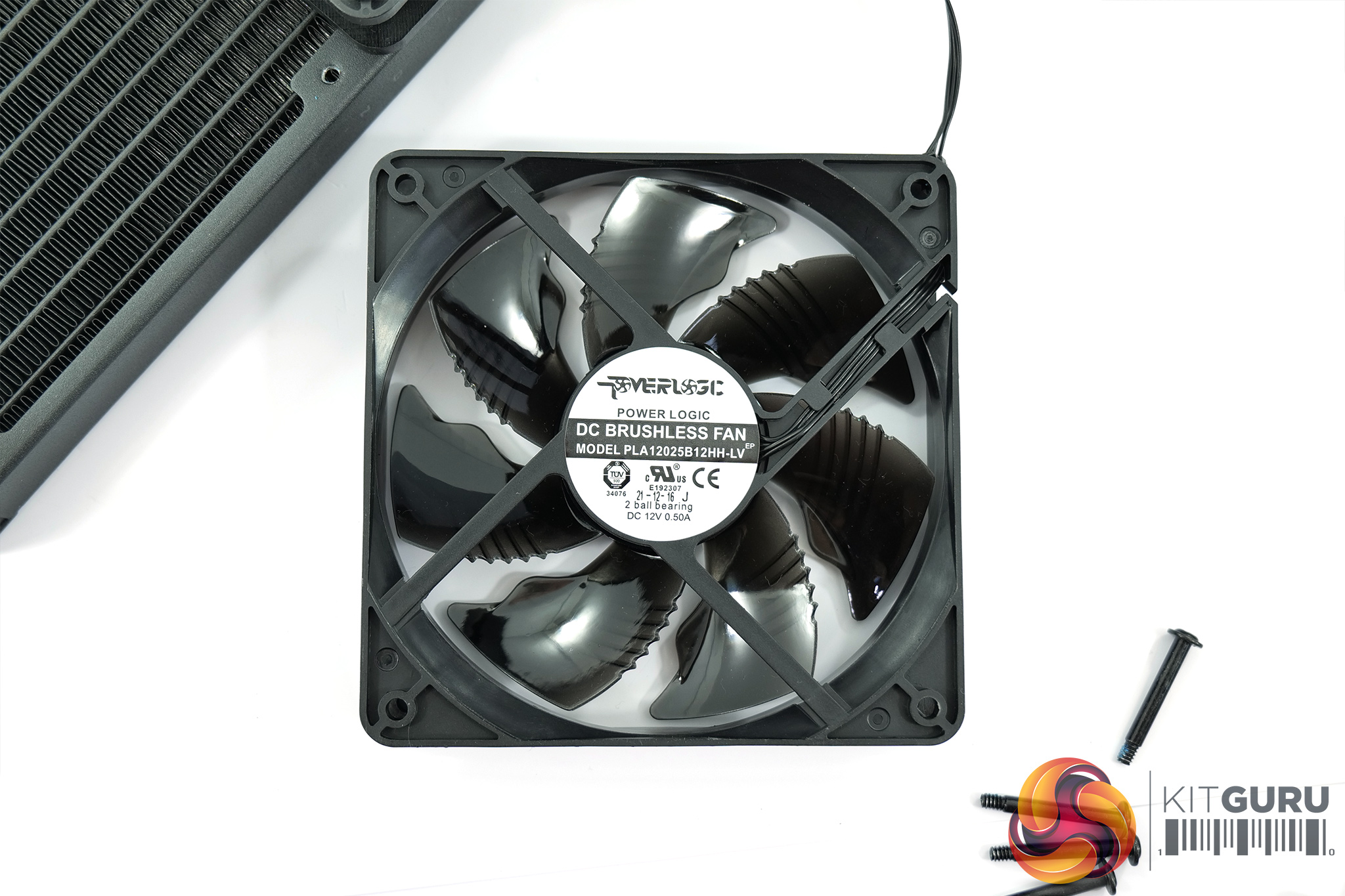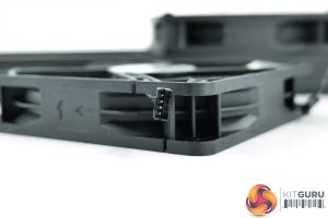 As for the fans, these are of course 120mm in size, and Gigabyte is using Powerlogic units here, with model code ‘PLA12025B12HH-LV'. They look fairly typical, with glossy black fan blades, but I’m not too keen on the fact that they use proprietary connectors. You could still swap the fans out for other models and connect them to your motherboard, but considering Gigabyte is using 4-pin connectors anyway, it would have been good for these to be standard PWM headers for ease of use.