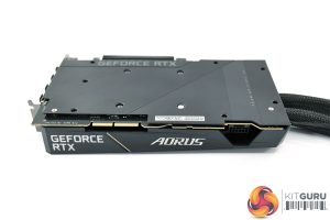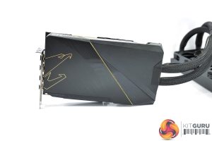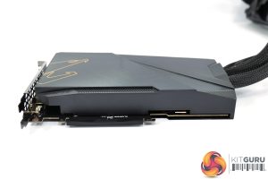 What we do know however is that Gigabyte is using a single copper base plate to contact with the VRM, GPU and memory, with the heat pulled away by the liquid cooler, so there’s no secondary fan on the card itself.