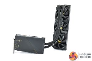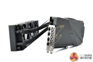 It’s good to see the card itself isn’t that big though, as it’s a standard dual-slot thickness and measures 238mm long and 141 mm tall. Of course, we then need to factor in the 360mm radiator however, with its 460mm long tubing, so it’s definitely worth checking this will fit in your case.