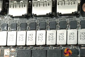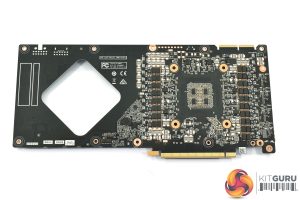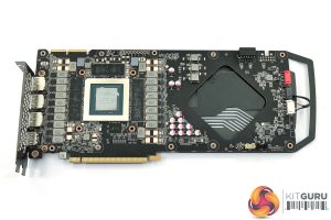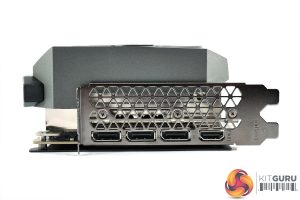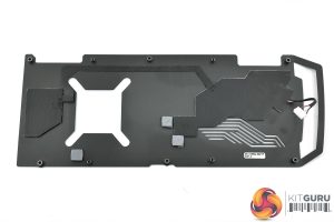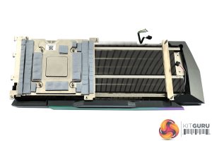 As for the heatsink, not only is it a beast of a unit, with eight heatpipes used, but it also boasts a vapour chamber – something we very rarely see from AIB card designs. The GPU and memory sit directly above said chamber, while the VRM contacts with a baseplate to either side.