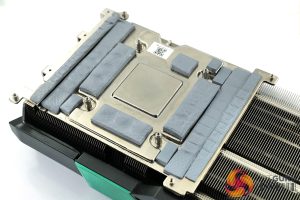As part of the HoloBlack cooler design, we can also note three 100mm fans. Interestingly, both of the outer fans have solid, matte fan blades whereas the central fan has glossy, translucent fan blades.