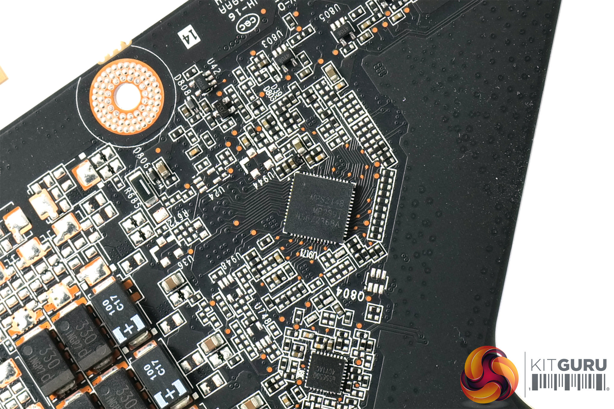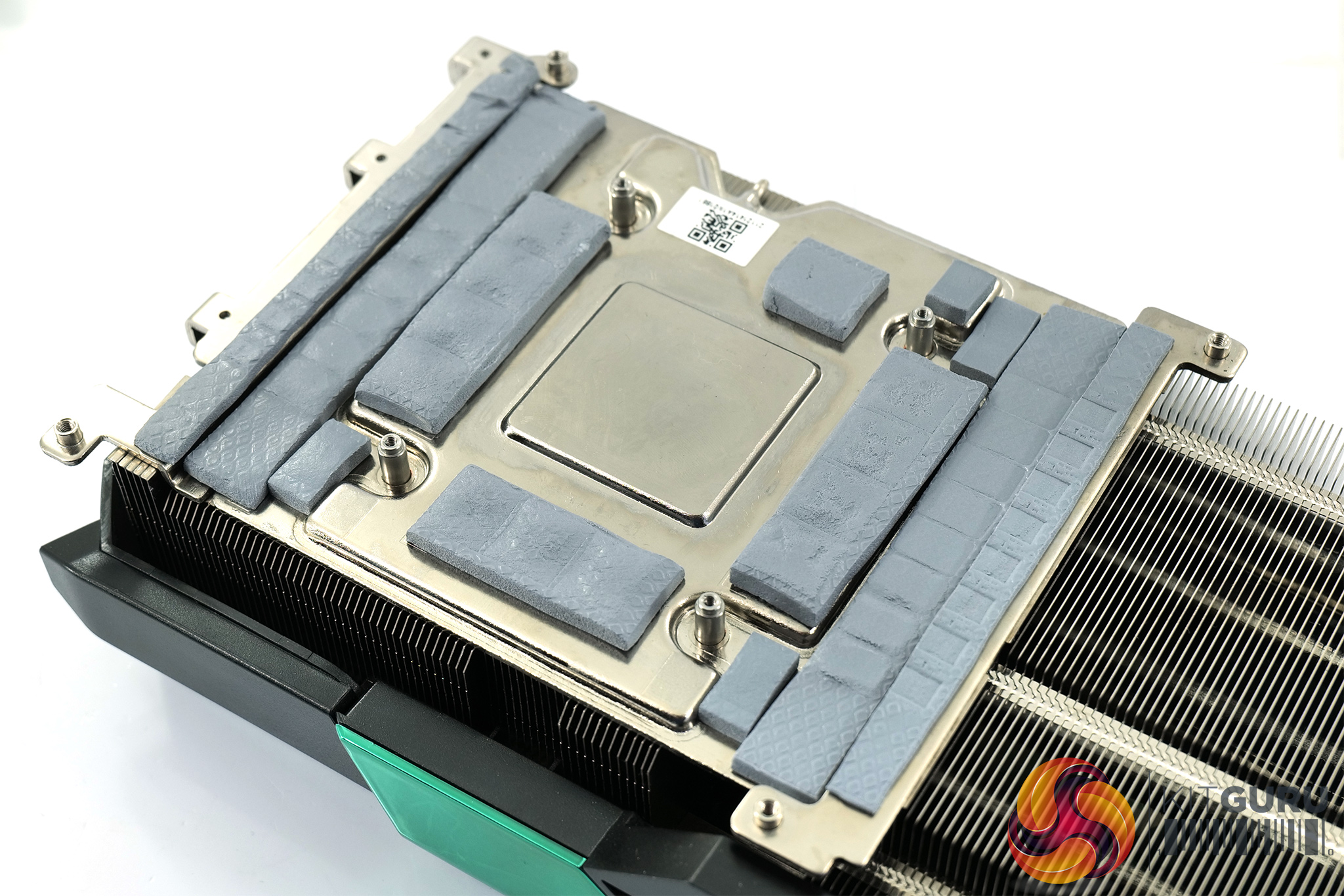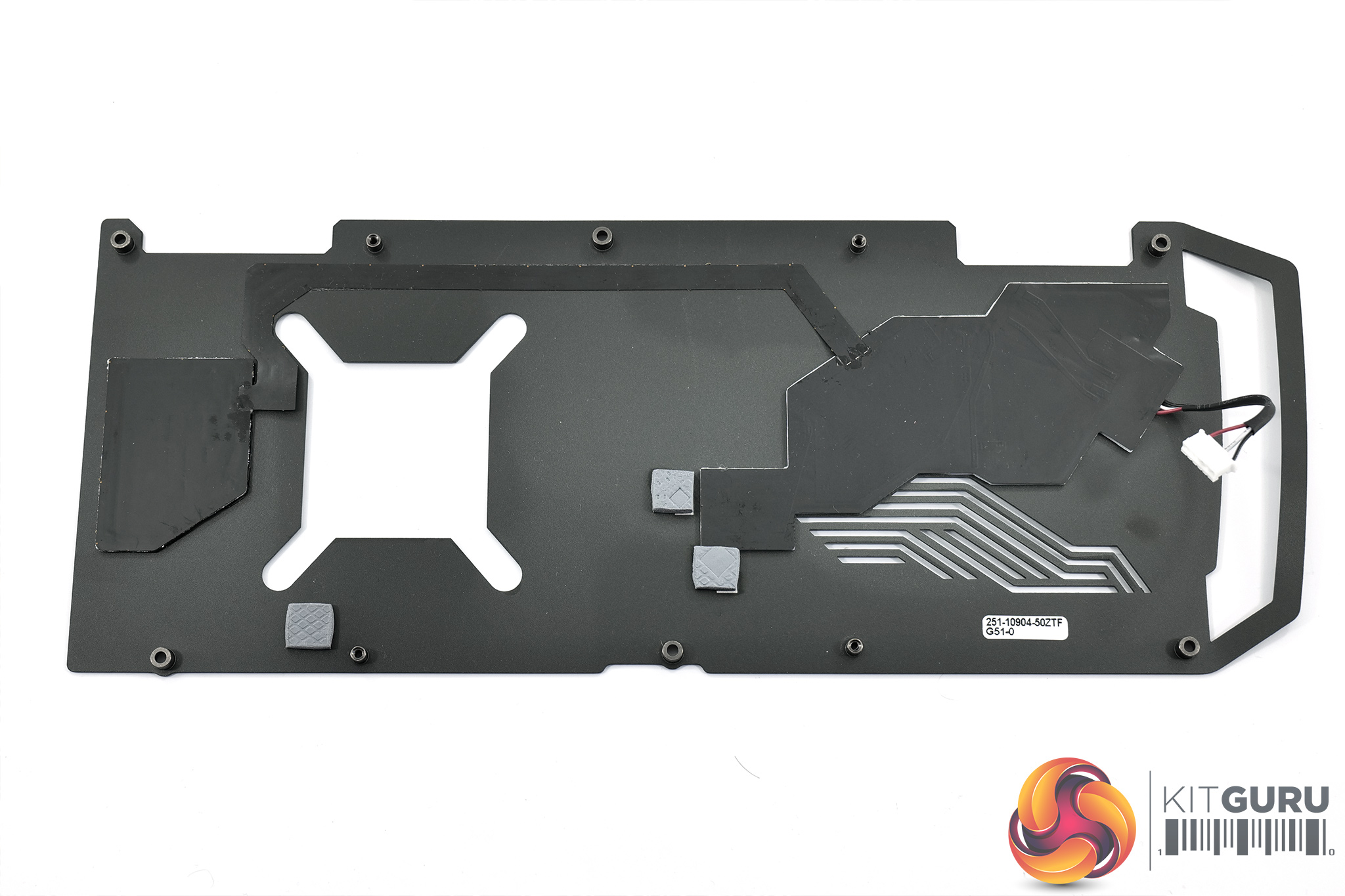 Here we get a look at the underside of the metal backplate – only three small thermal pads are used, one of which sits over the MP2981 controller.