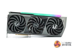 As with any RTX 3090 Ti, the Amp Extreme Holo is absolutely massive, measuring 355.9mm x 149.7mm x 63.9mm. That makes it a proper triple-slot card, and it is very long too, so definitely double-check that this will fit in your case. You may want to use that included support bracket too, as the card weighs 2.08KG on my scales.