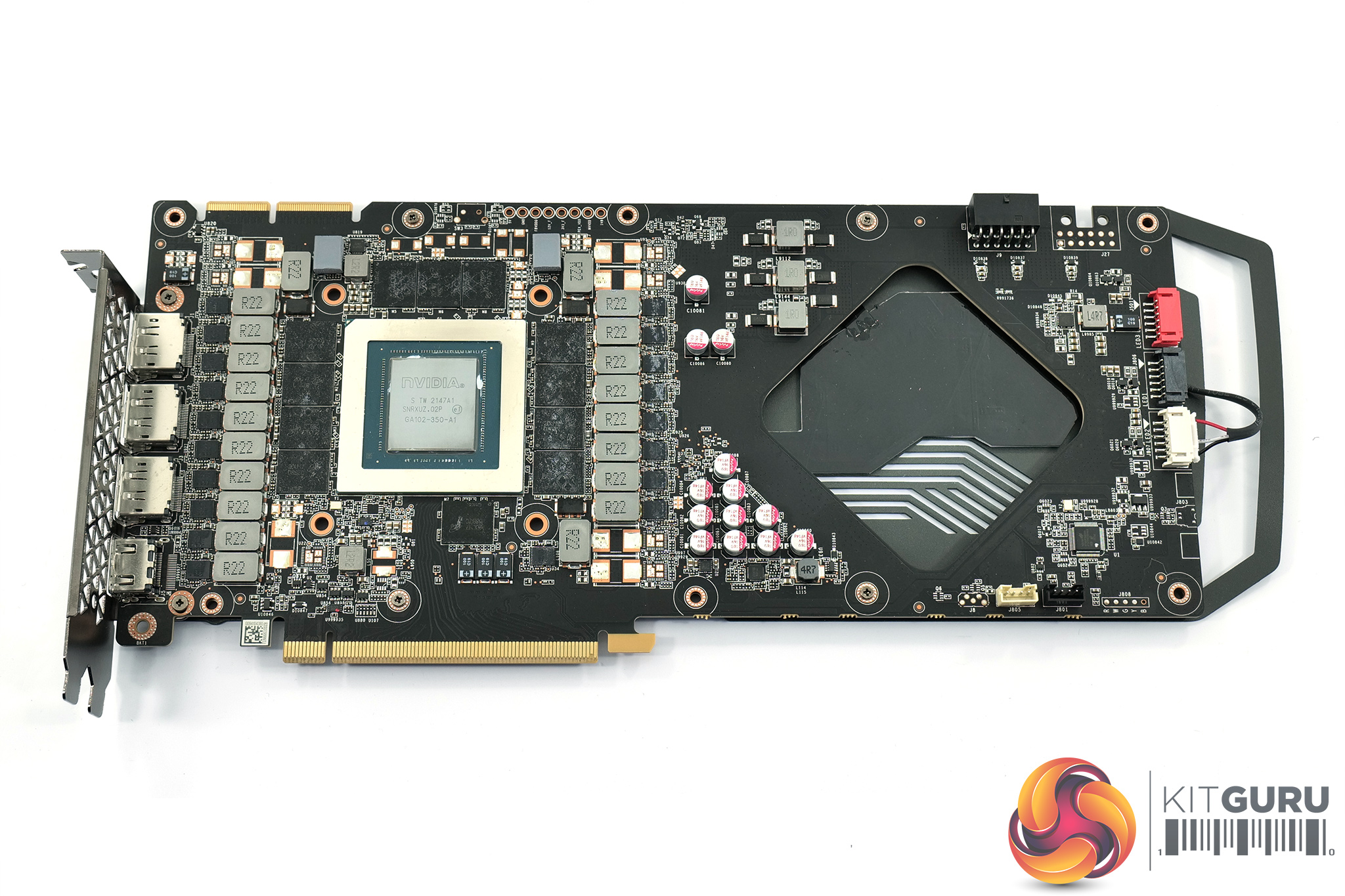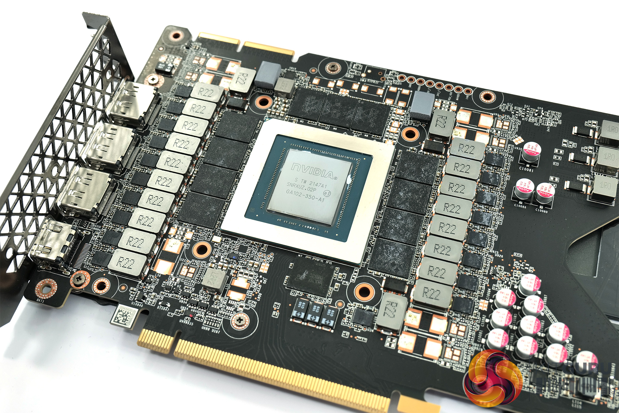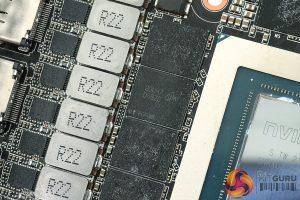 Still, we can note a whopping 18-phase VRM for the GPU and a 3-phase VRM for the memory, with Monolithic Power Systems MP86597 MOSFETs used, each rated for 70A. A MPS MP2981 controller is used. We can also note 12x 2GB GDDR6X memory modules from Micron, carrying the D8BZC model code.