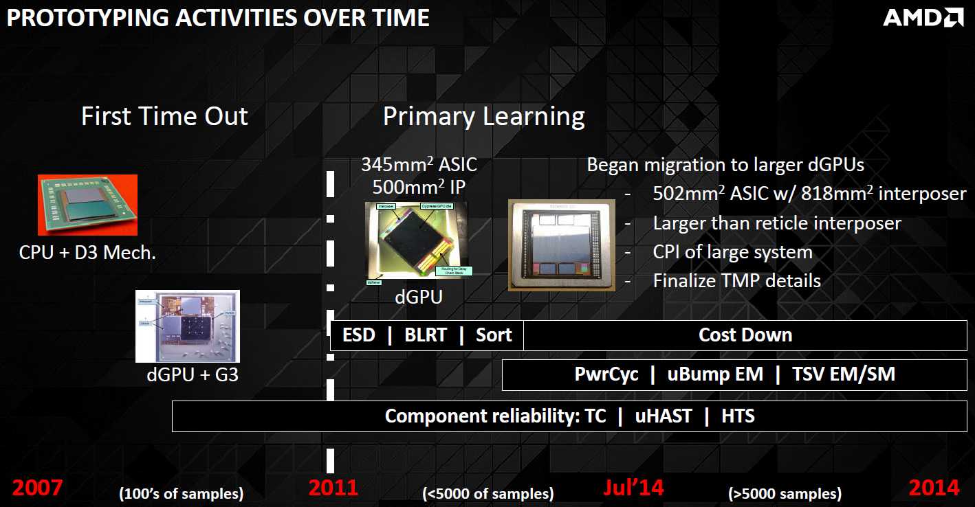 Development of new technologies requires a lot of prototyping activities in general. Before AMD and SK Hynix proceeded to standardize their HBM memory with JEDEC in 2010, the companies had to design multiple implementations of their new technologies and learn how they operated in real-life.